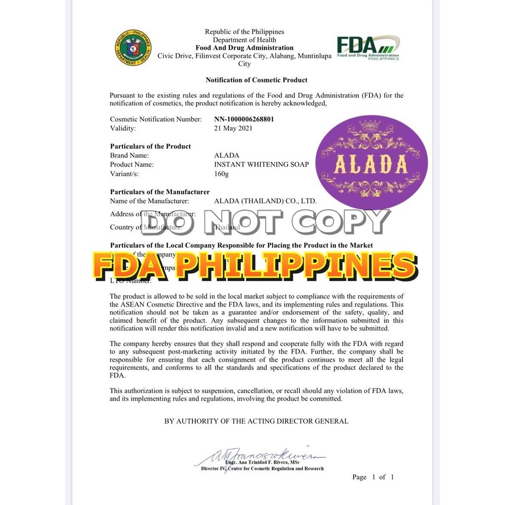 FDA APPROVED Authentic Alada Whitening Soap from Thailand with QR CODE