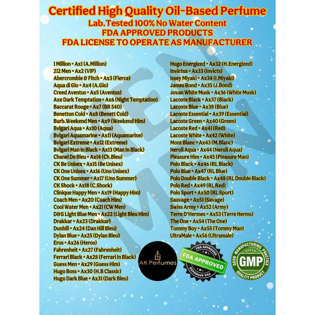 FDA Approved AK Perfumes 30% Oil-Based Perfume free Box for Men and Women