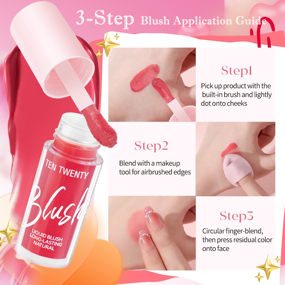 FDA-Certified TEN TWENTY Liquid Blush|Long-Lasting Natural Glow Sweat/Water Resistant