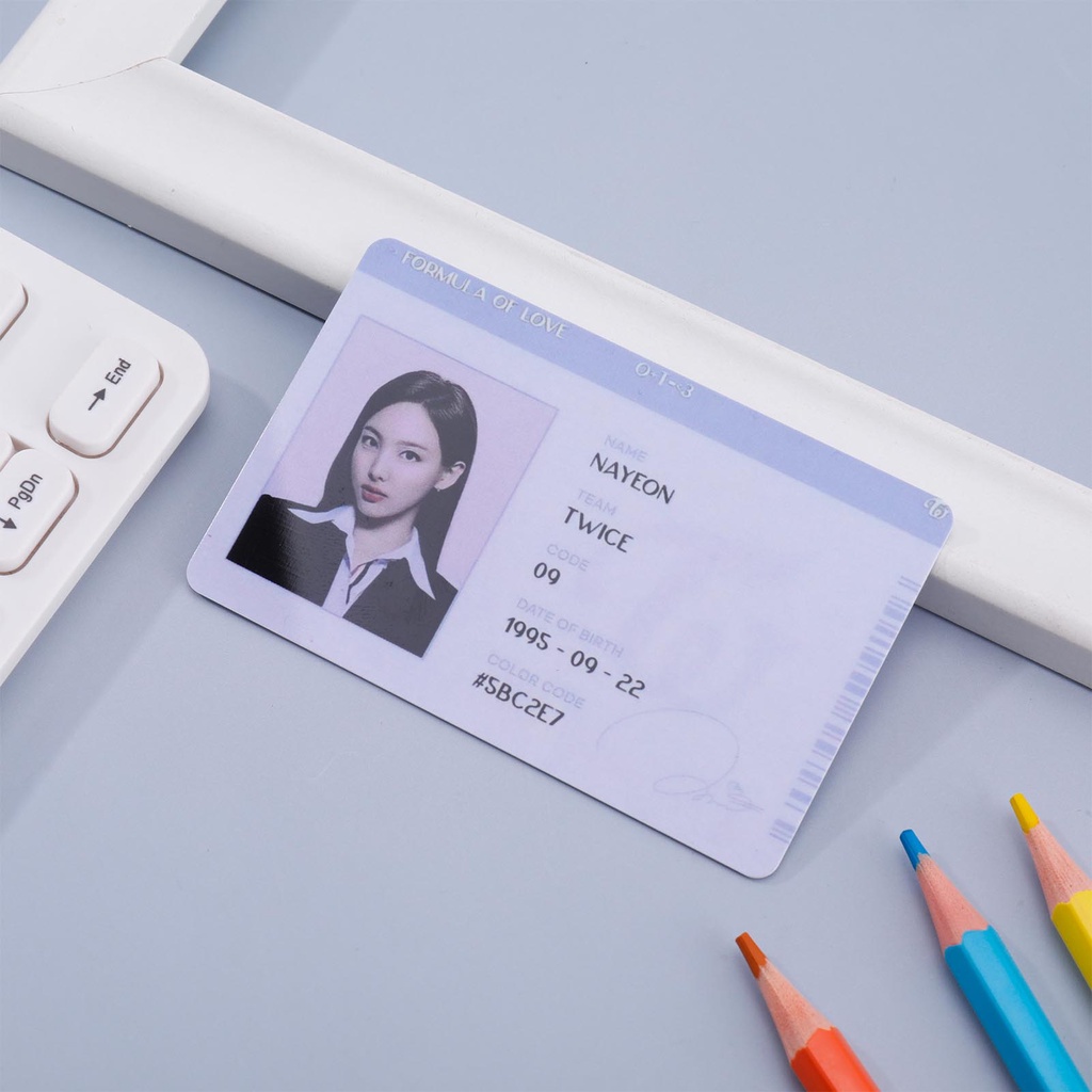 FDX 1PCS KPOP TWICE Figures Student ID Card Formula of Love SANA MOMO JEONGYEON PVC Name Cards For Fans Collection