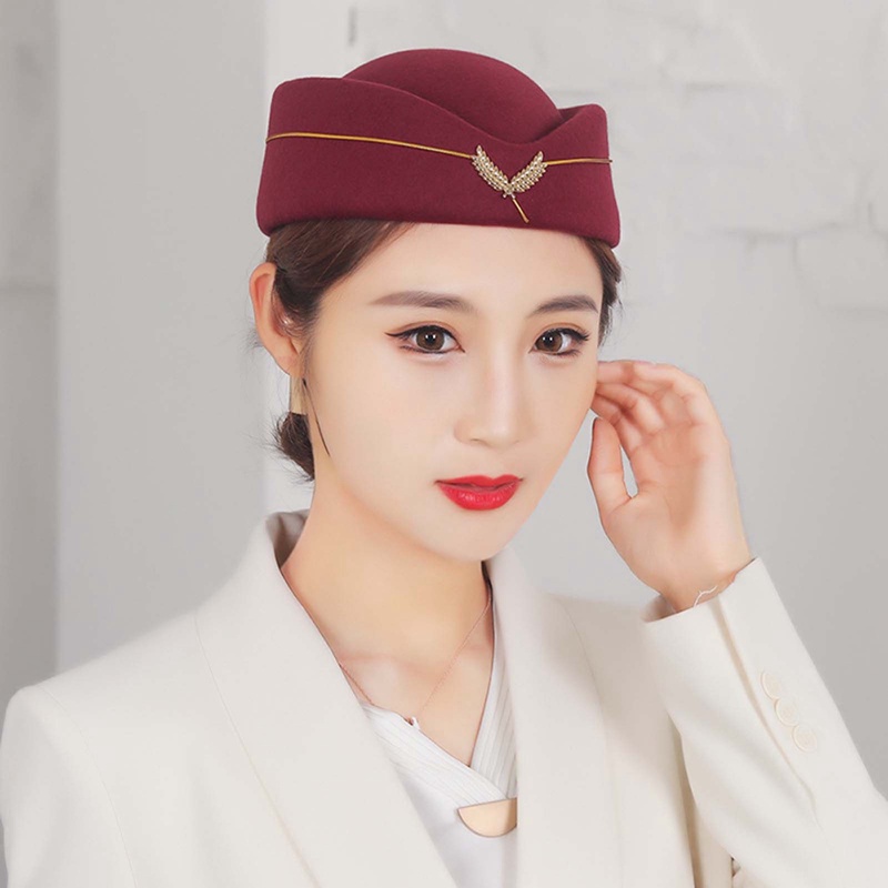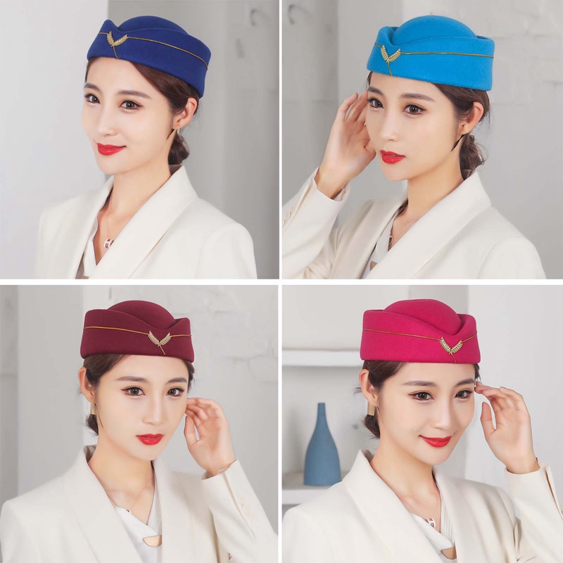 FDX Wool Felt Air Hostesses Beret Hat Base Cap Airline Stewardess Formal Uniform Hat Caps