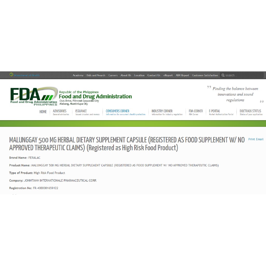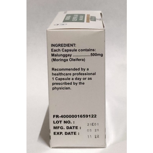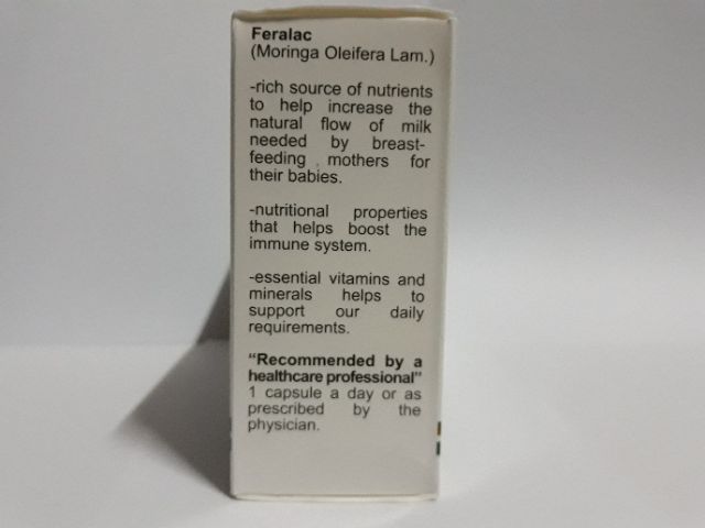 FERALAC Moringa Oleifera Lam (Malunggay) Food Supplement 500mg Box of 100 Capsules