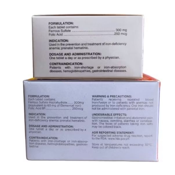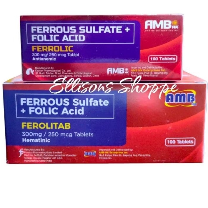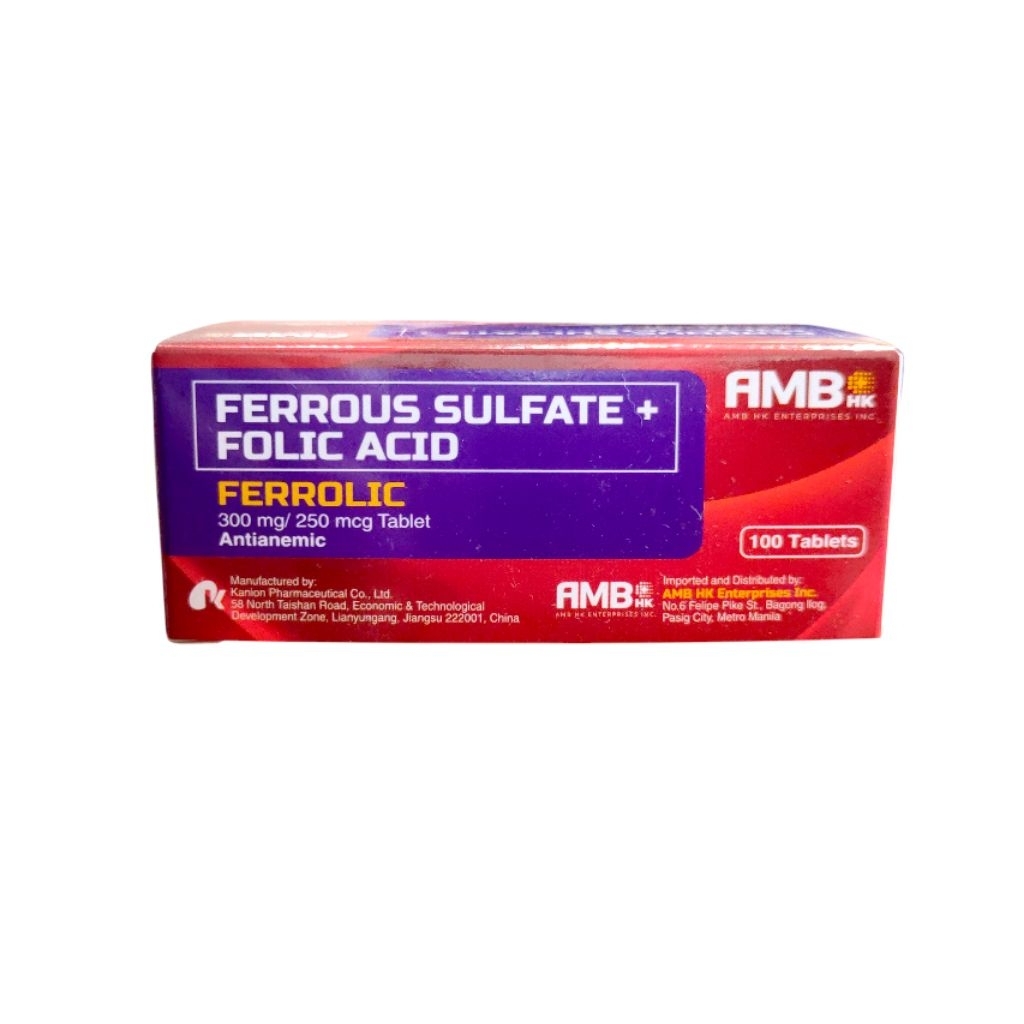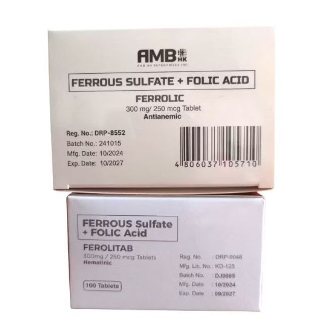 FEROLITAB / FERROLIC Ferrous Sulfate + Folic Acid 300mg/250mcg 100 Tablets