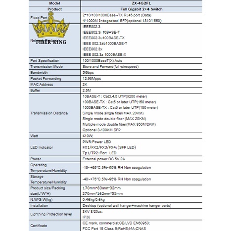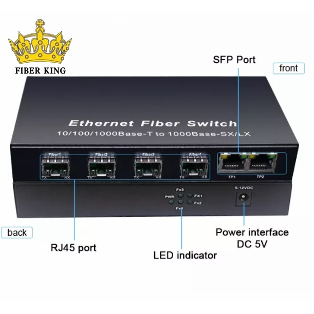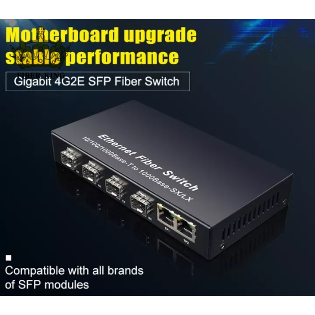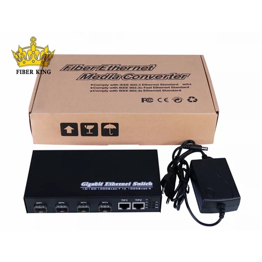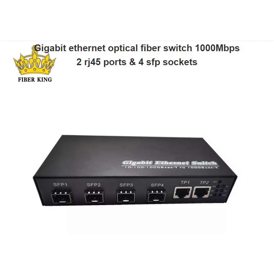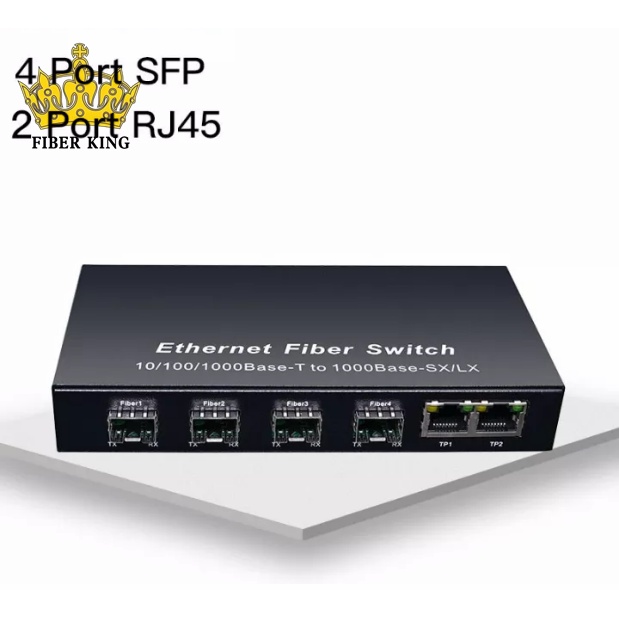 FIBER KING Gigabit Optical Switch 1000Mbps 4 Port SFP 2 RJ45 Ports 4SFP