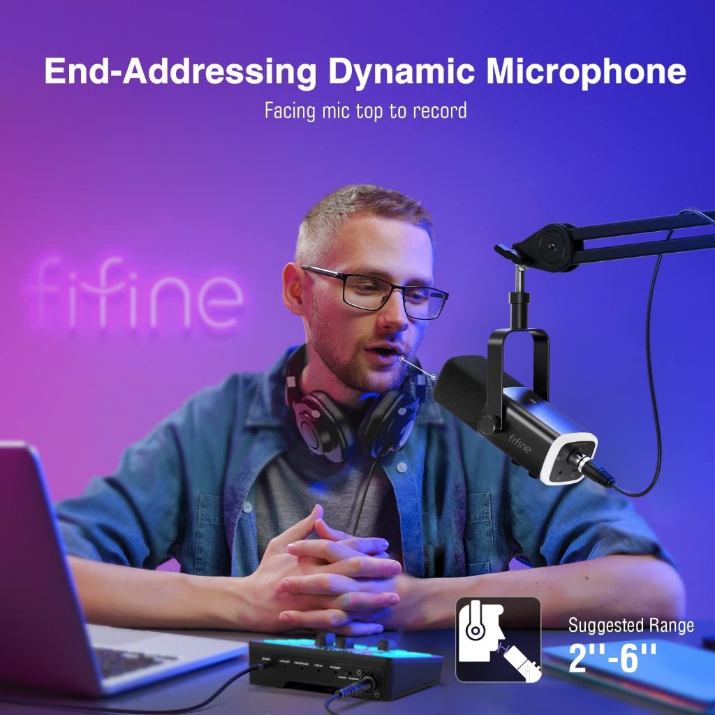 FIFINE AM8 AmpliGame XLR/USB Dynamic Microphone Podcast Microphone Gaming Mic RGB Mic Streaming Mic