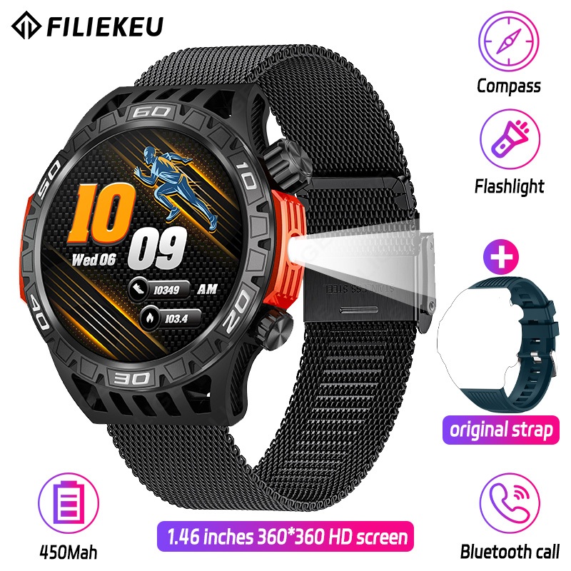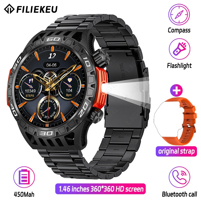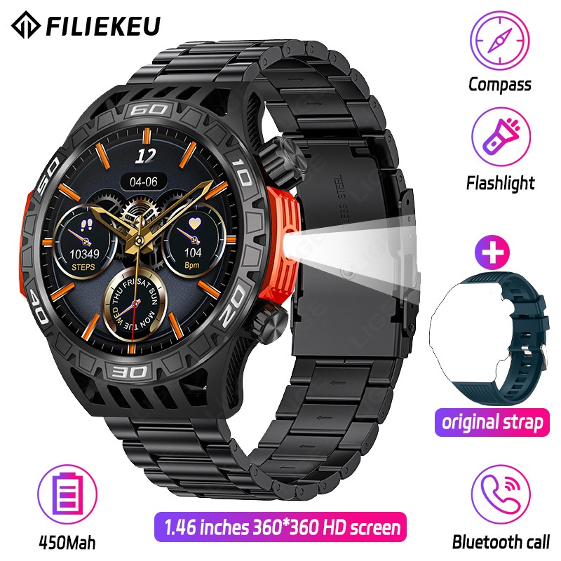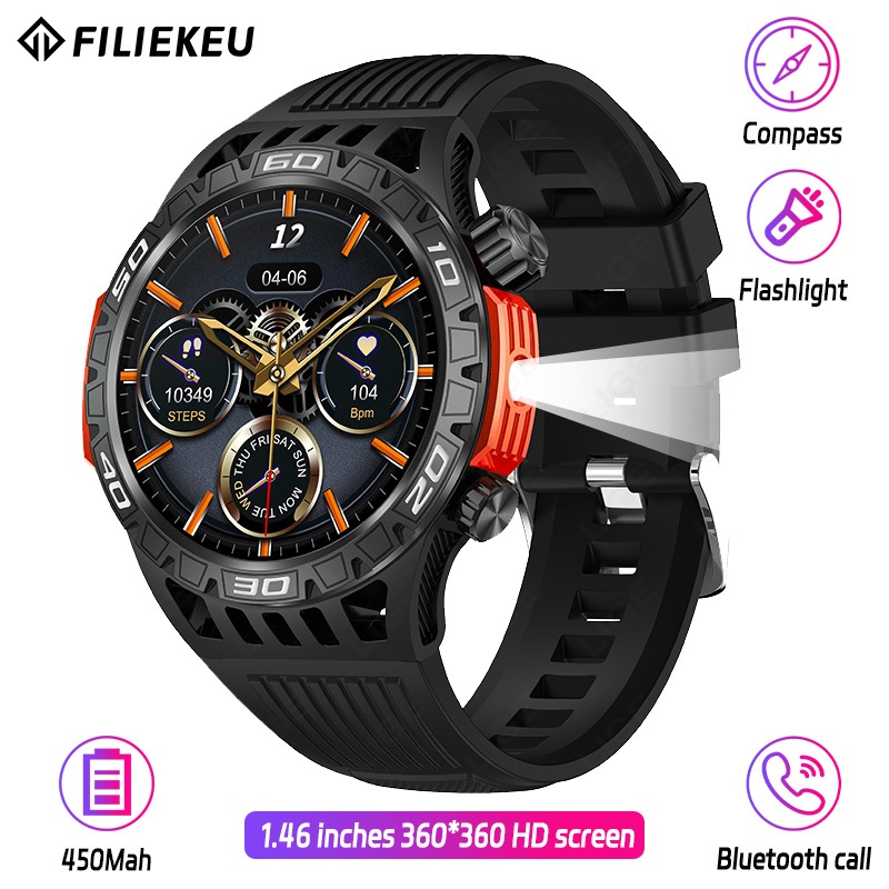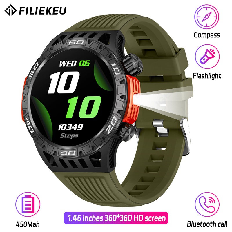 FILIEKEU LED Flashlight Smart Watch Compass SOS Outdoor Sports Watches Bluetooth Call Waterproof Rugged Military Tactical Smart Watch
