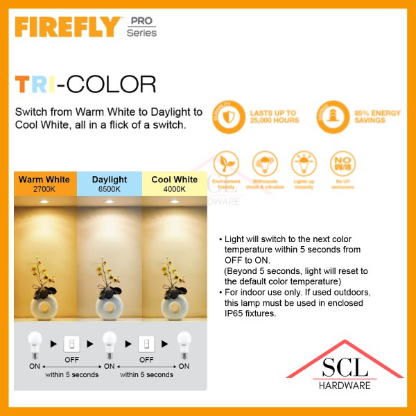 FIREFLY Pro Series/Basic Series Tri-Color LED Bulb 8W Daylight Warm White Cool White