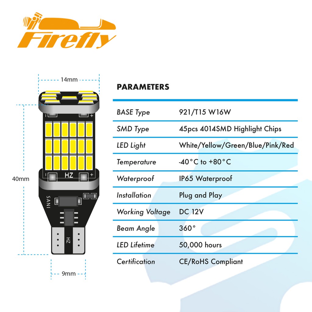 FIREFLY T15 4014 45Smd Led Park Light W16W 2 Pcs