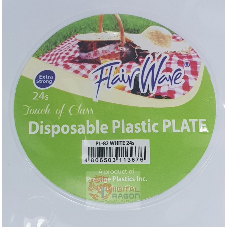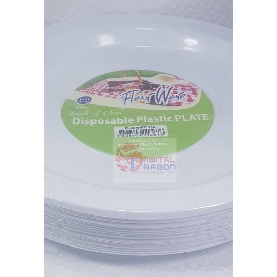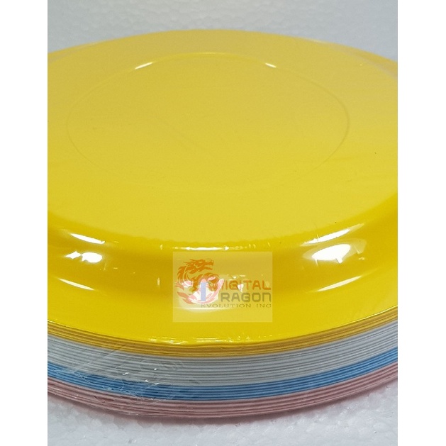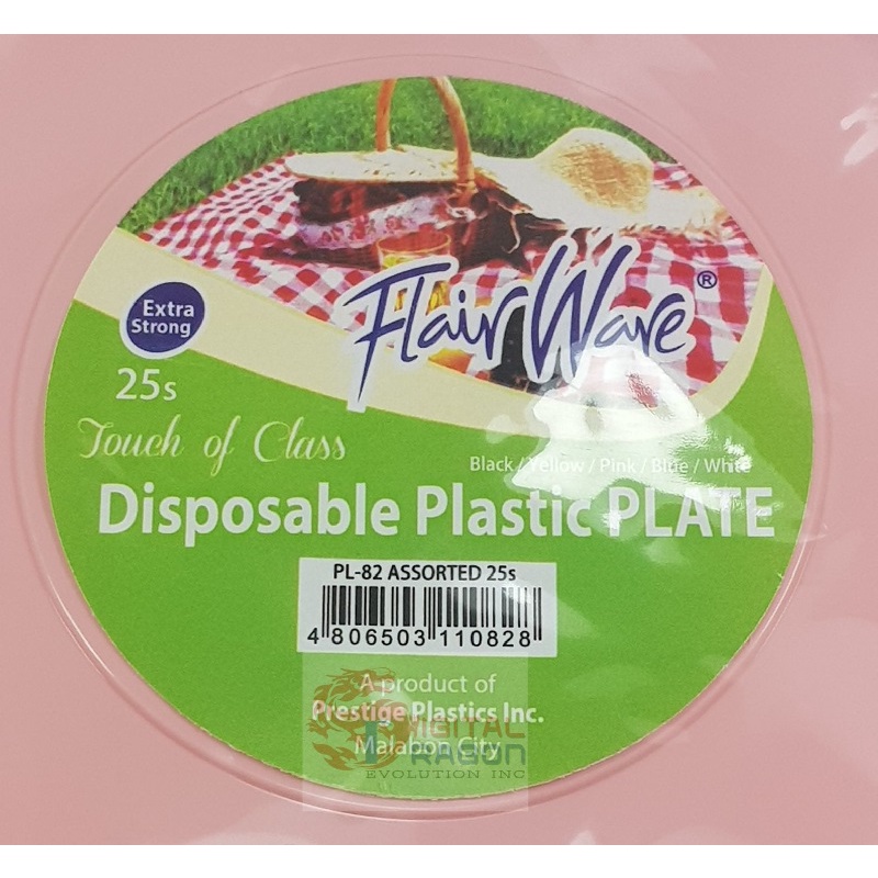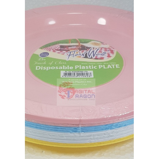 FLAIRWARE COLORED DISPOSABLE PLASTIC PLATES (PINK/BLUE/WHITE/YELLOW) WITH TOUCH OF CLASS 25/24pcs