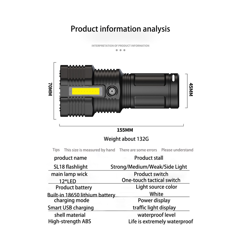 FLASHLIGHT RECHARGEABLELEDSearchlight Spotlight Big Beam LongRange Flashlight USB Rechargeablepatrol