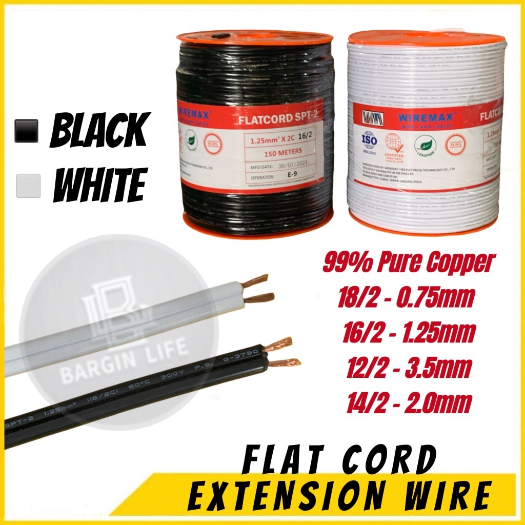 FLAT CORD WIRE sold per Meter WHITE/BLACK #14 , #12 , #16 , #18+()
