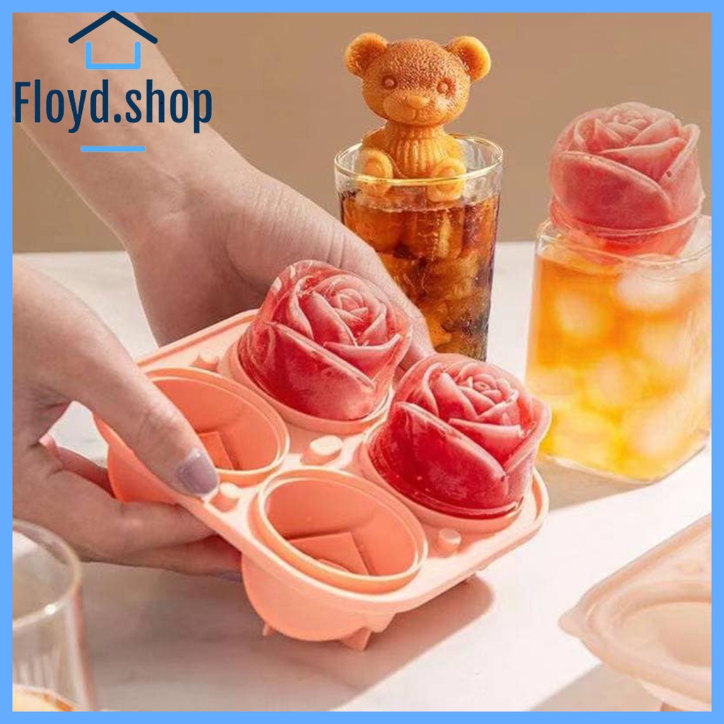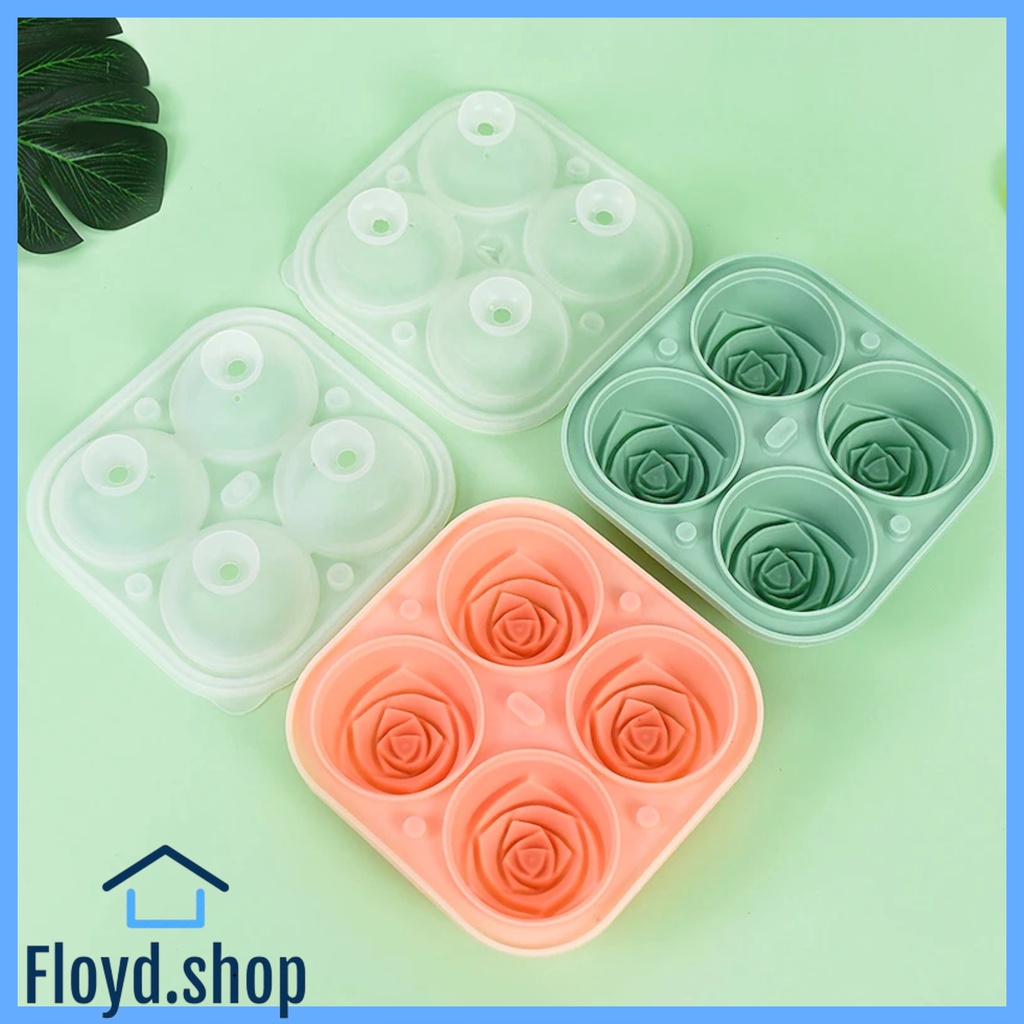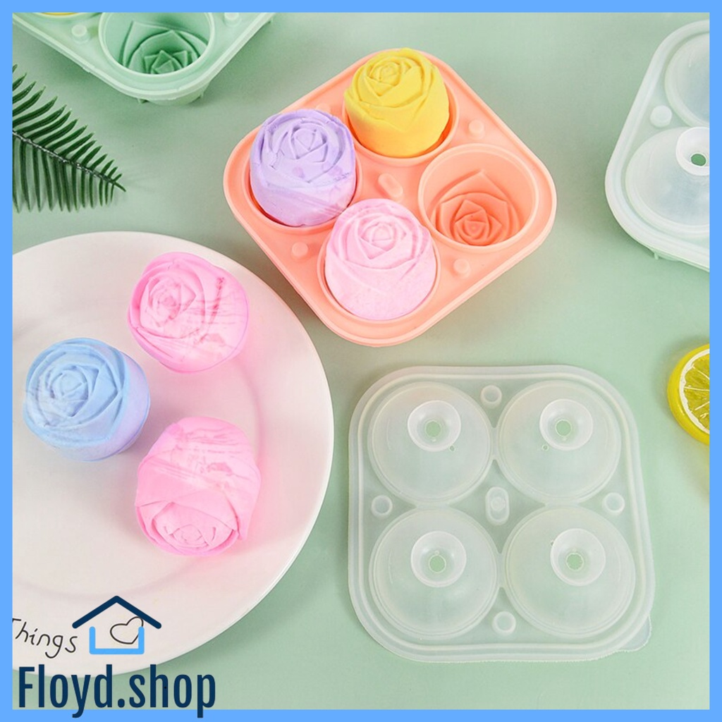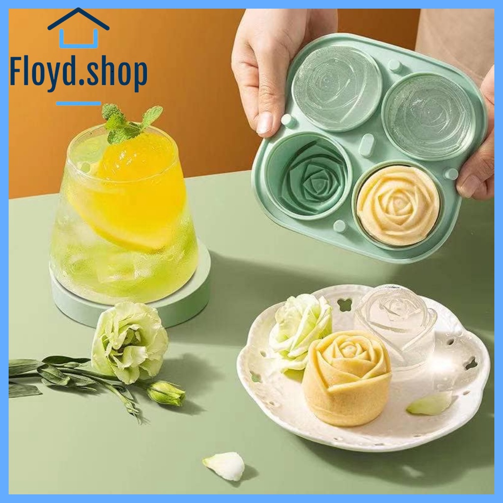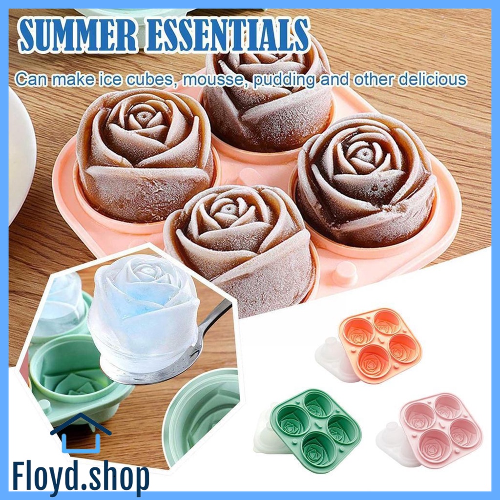 FLOYD.SHOP 3D Rose Flower Ice Cube Maker silicone Molds 4 Holes Rose Flower Shape Reusable