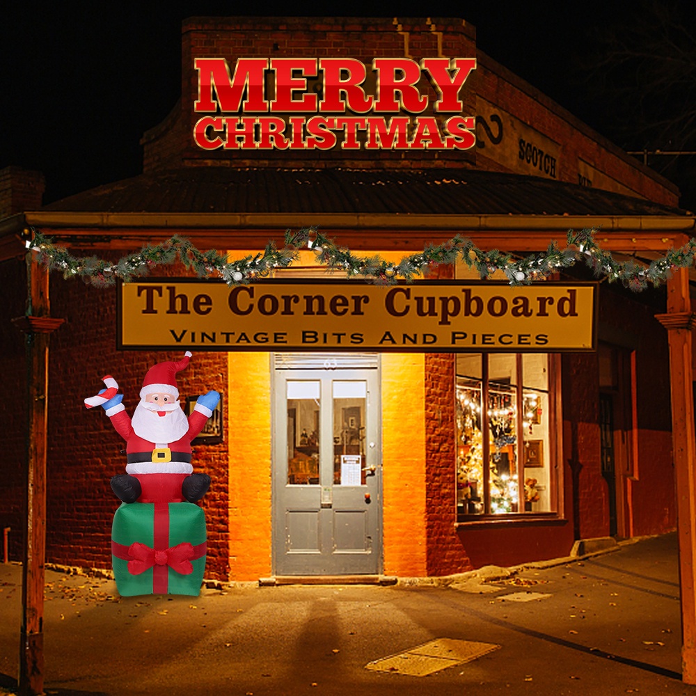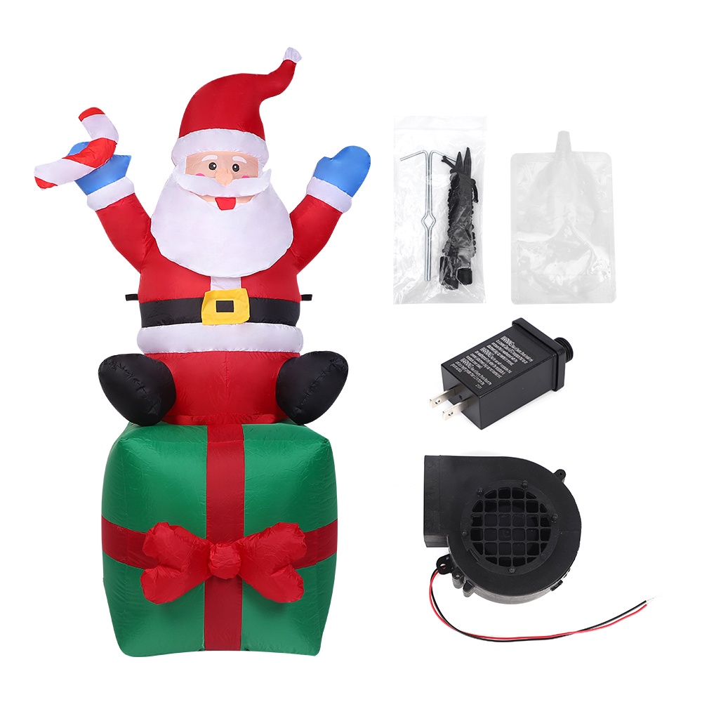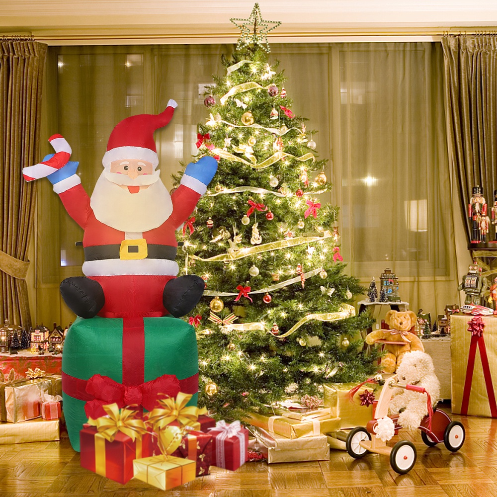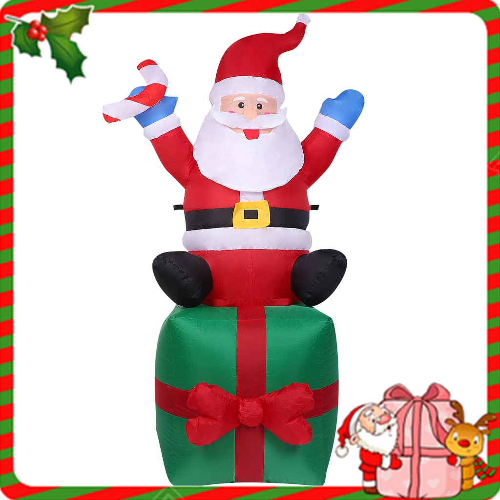 FLP 6 FT Christmas Inflatables Santa Claus Waterproof 6 LED Lighted Giant Blow Up Santa Gift Box with Floor Stakes and Ropes for Lawn Yard Garden Holiday Xmas Decorations