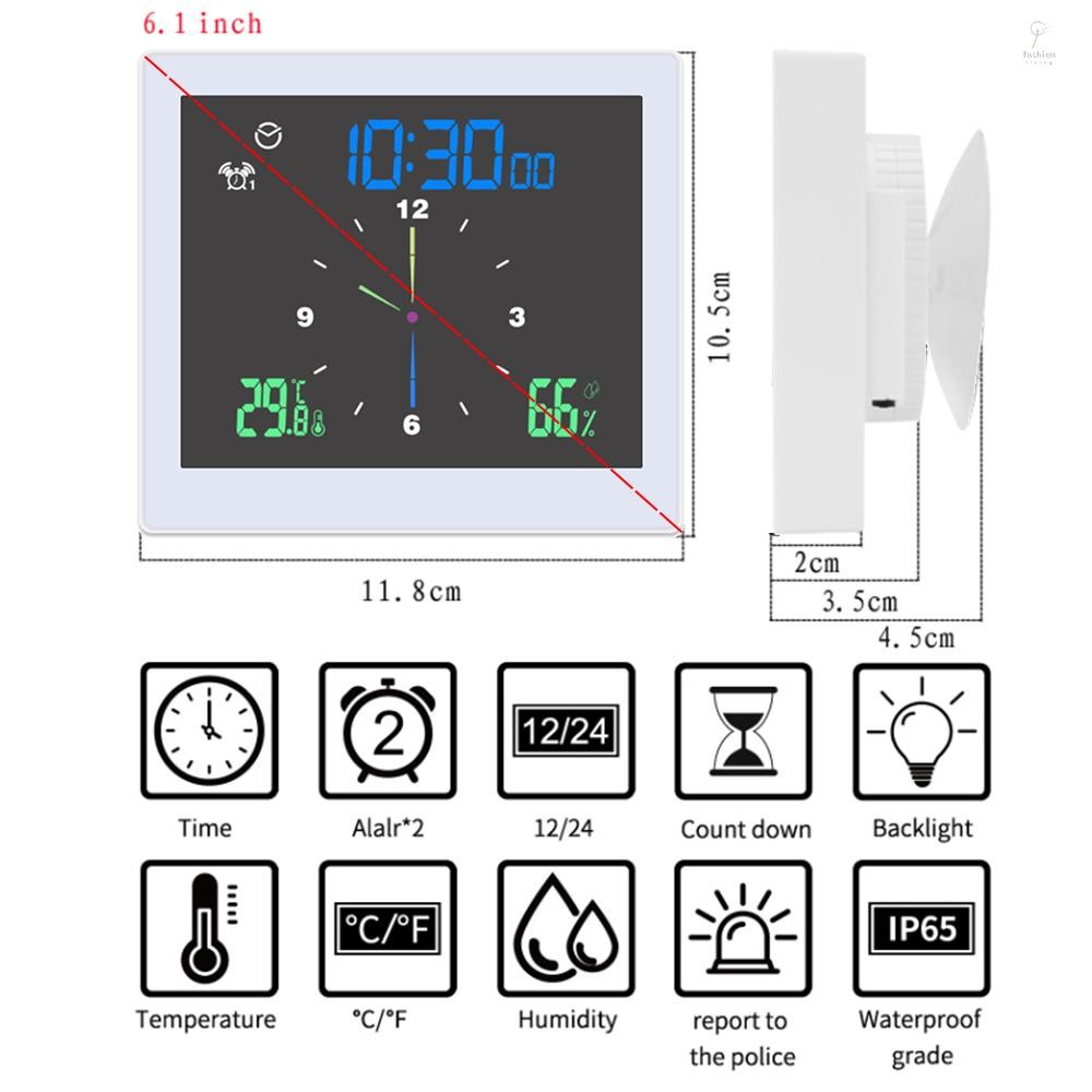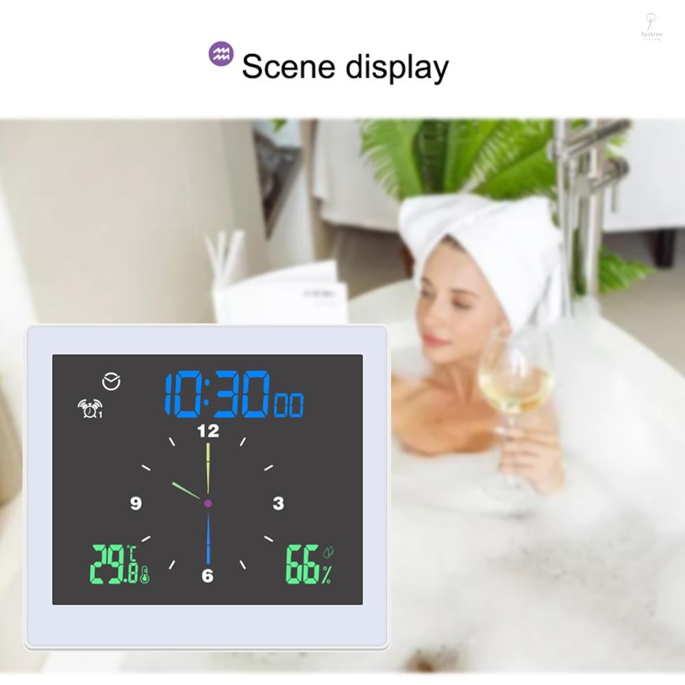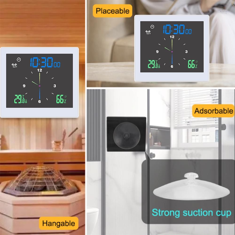 FLP Bathroom Digital Clock Waterproof Temperature & Humidity Meter Thermometer Hygrometer LCD Display Upper/Lower LiFLP Dual Alarms with Snooze Function Countdown Alarm Clock