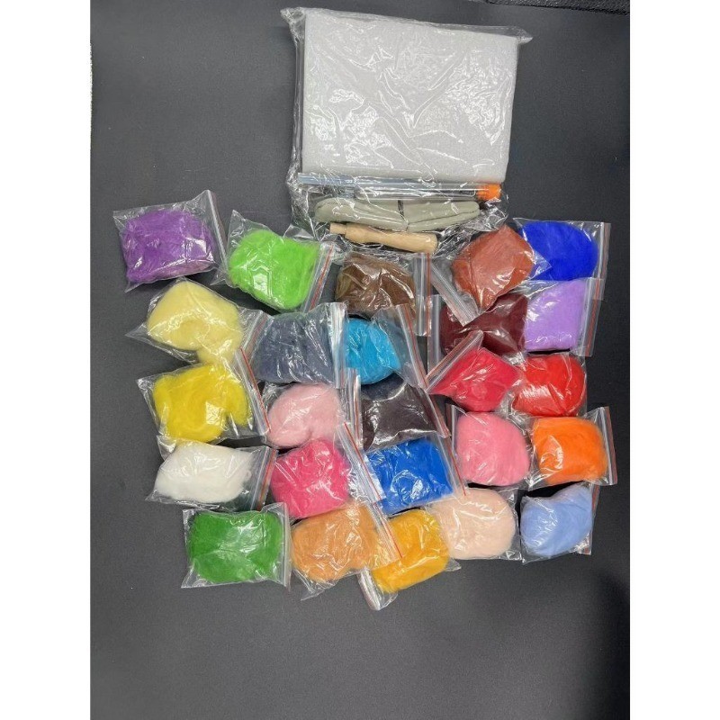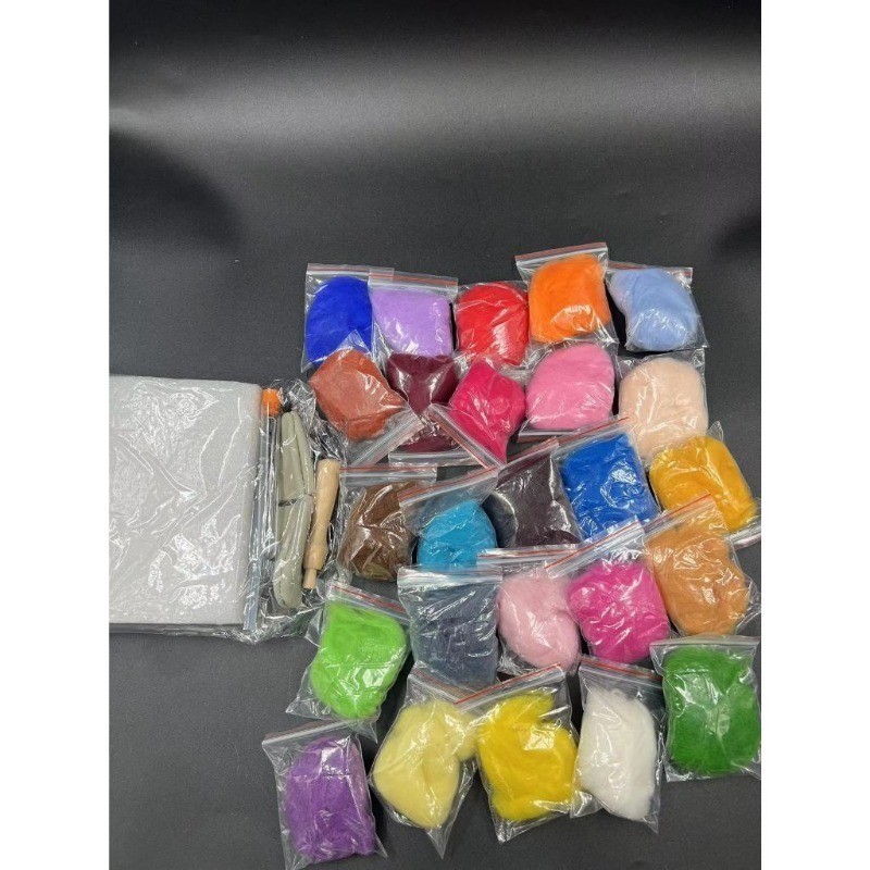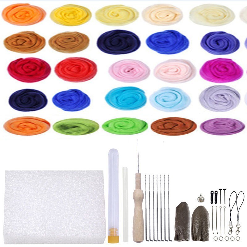 FLP Felting Kit Wool Roving 25 Colors Set Felting Starter Kit Fibre Yarn Felting Supplies for DIY Crafting Home Office Art Use
