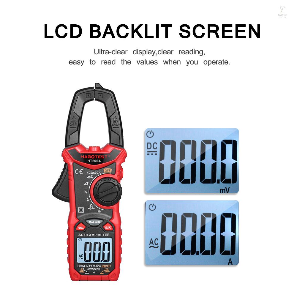 FLP HABOTEST Digital Clamp Meter Auto Range Multimeter Voltmeter Ammeter Ohmmeter Measuring AC/DC Voltage Current Diode Resistance Continuity Capacitance Buzzer Alarm Max/Min Mode