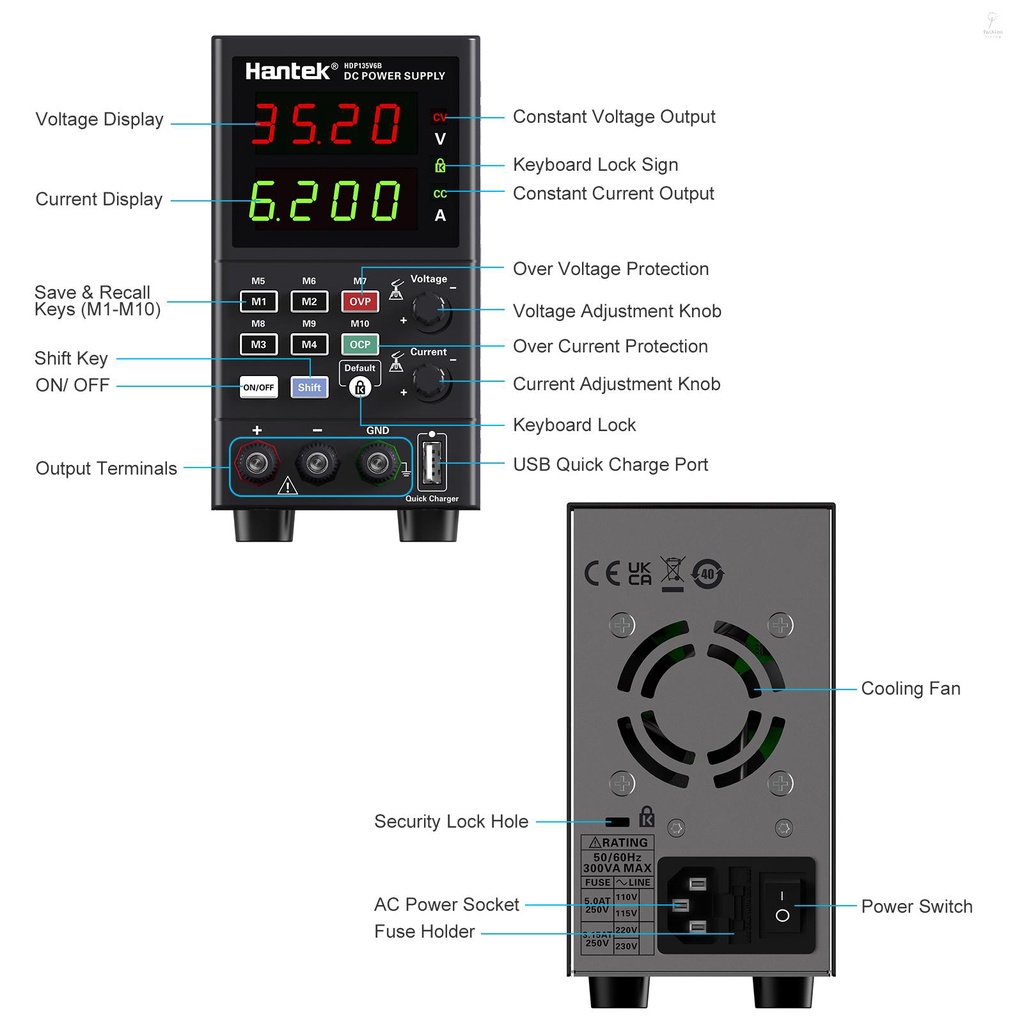 FLP Hantek HDP135V6B Digital Bench DC Power Supply Variable 35V 6A Adjustable Switching Regulated Power Supply CV CC with Data Storage, On/ Off Output, USB Quick Charge, PC Softwar