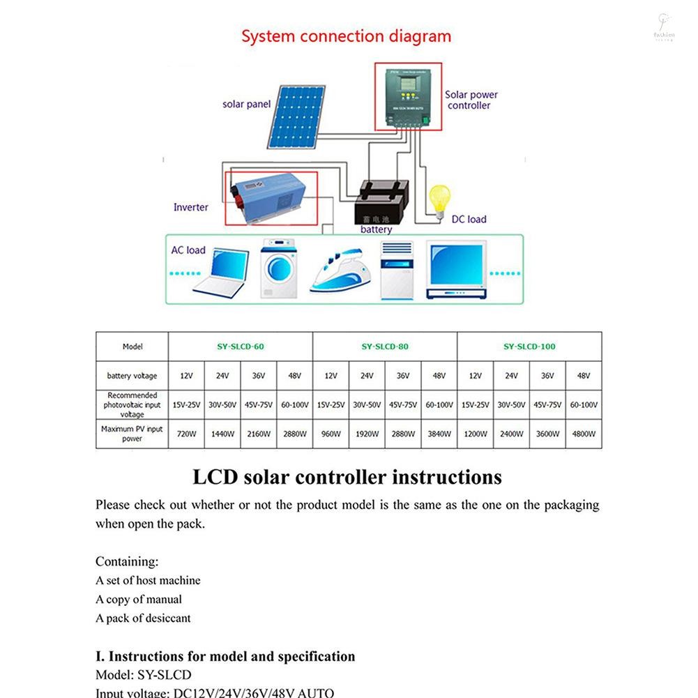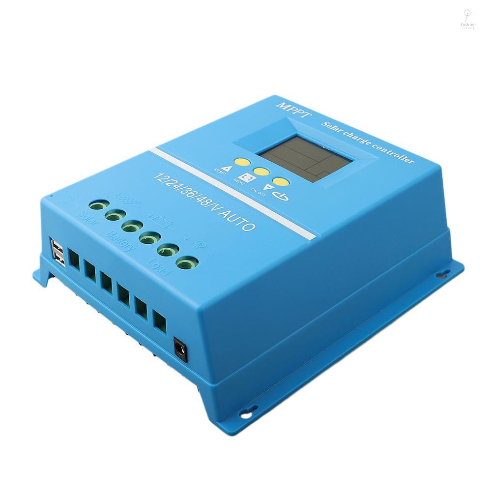 FLP Maximum Power Point Tracking Solar Controller 12/24/36/48V Automatic Identification Intelligent Photovoltaic System Solar Charging Controller LCD Display with Backlight