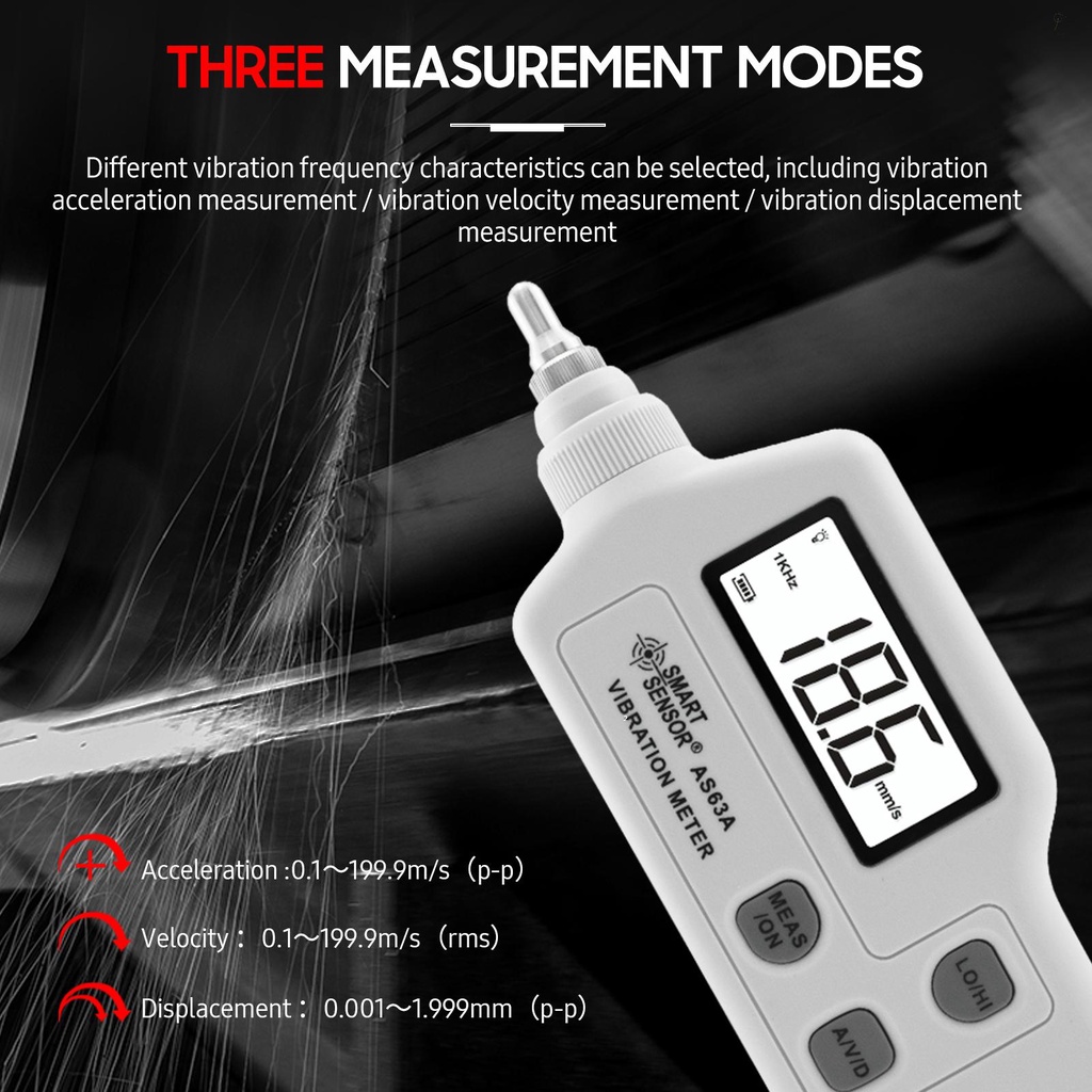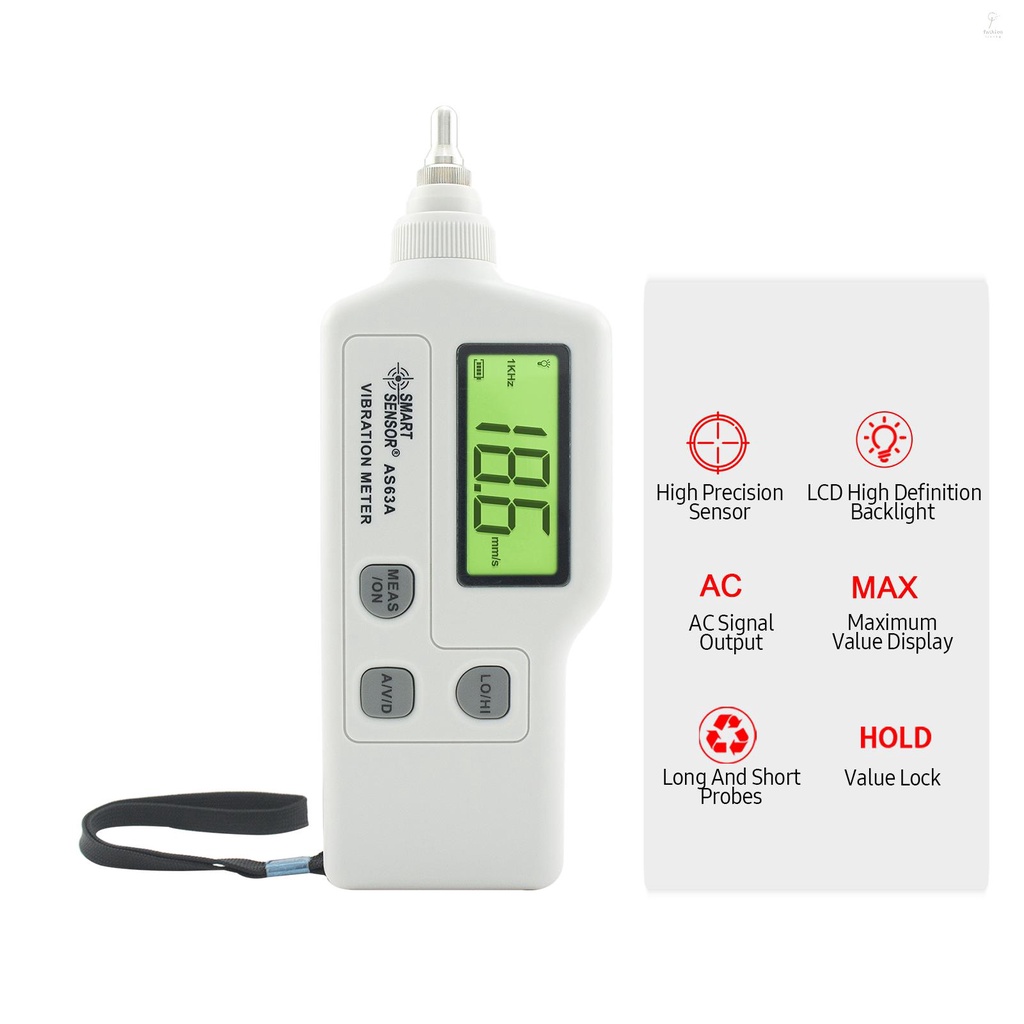FLP SMART SENSOR AS63A Digital Vibration Meter with LCD Screen Vibration Analyzer Tester AC Output Acceleration / Velocity / Displacement Measurement