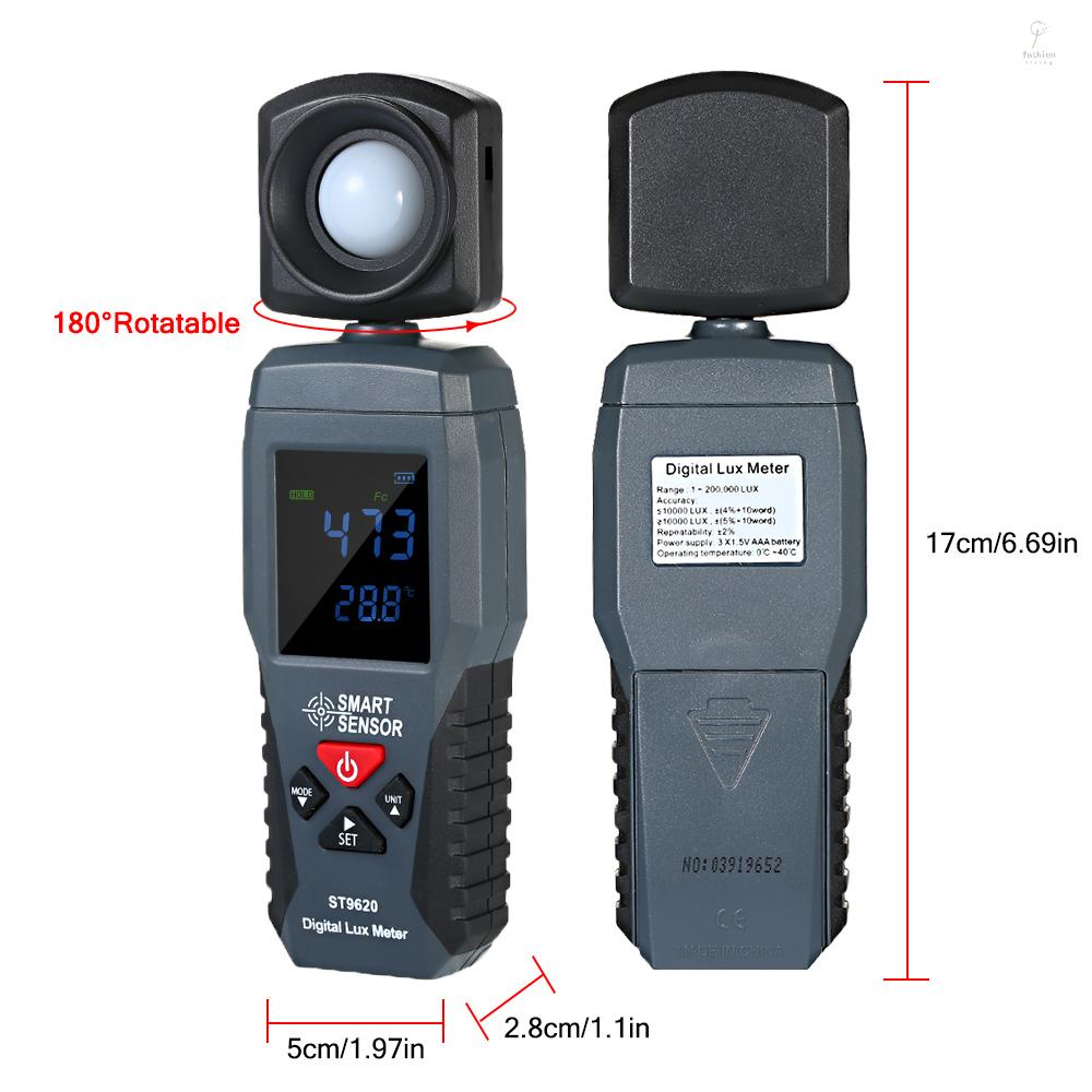FLP SMART SENSOR Digital Lux Meter LCD Display Handheld Illuminometer Luminometer Photometer Luxmeter Light Meter 1-200000 Lux ST9620