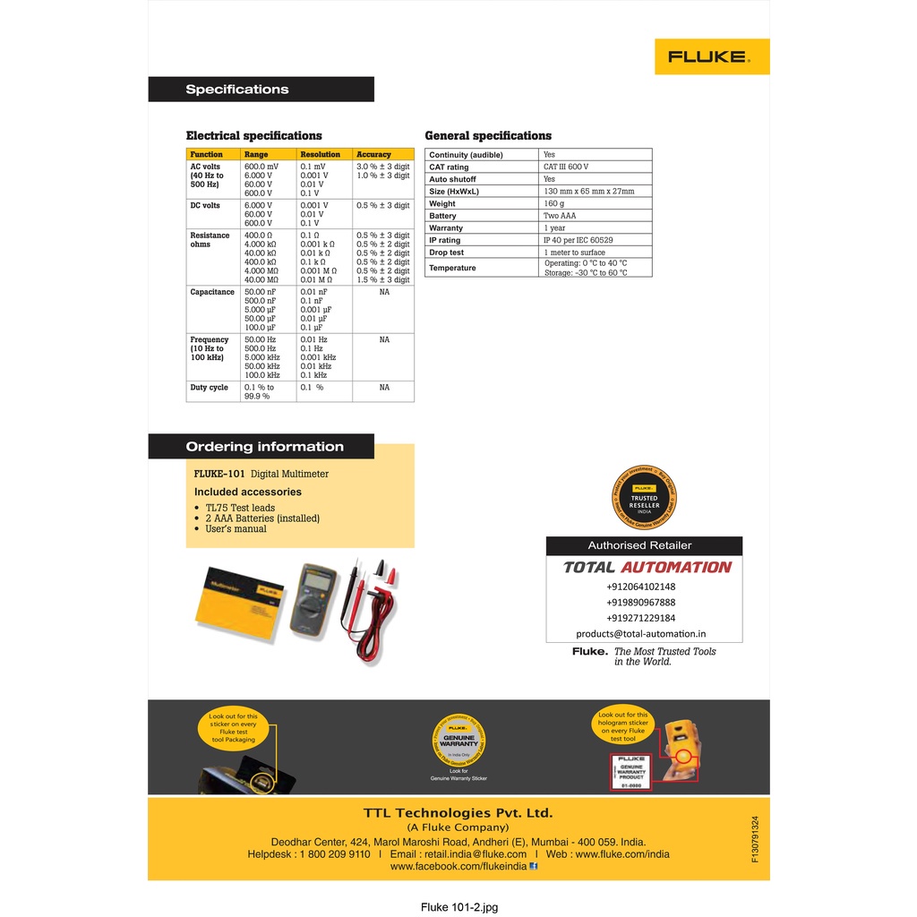 FLUKE 101 Digital Mutimeter Pocket Tester Kit Portable Multimeter