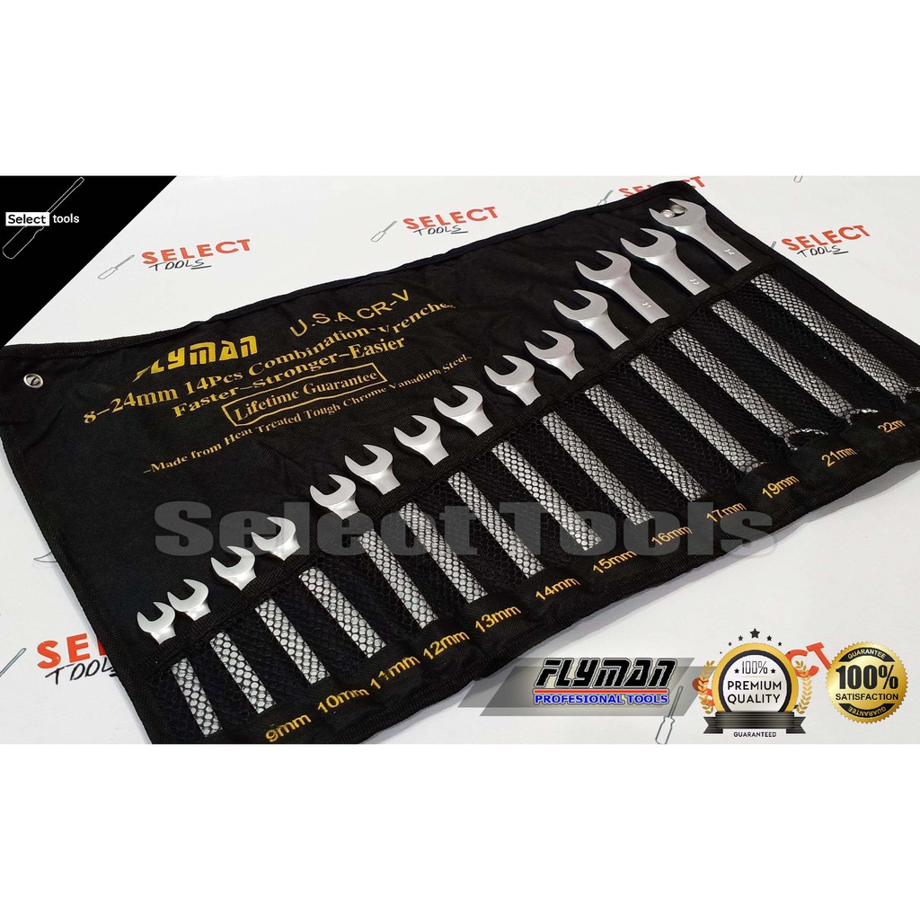FLYMAN U.S.A 14 PCS COMBINATION WRENCH 8 TO 24MM HEAVY-DUTY