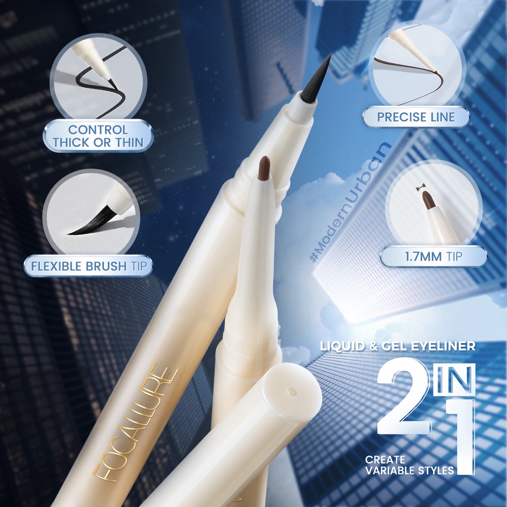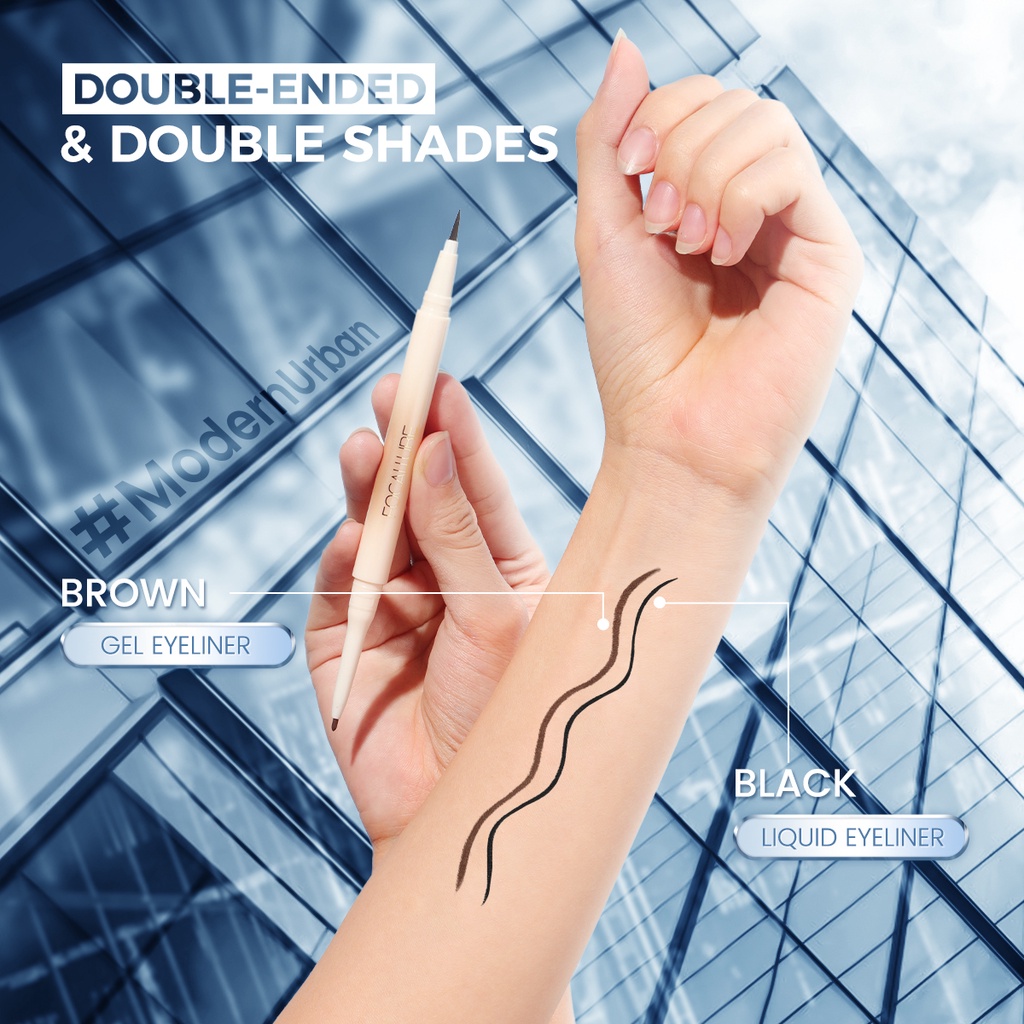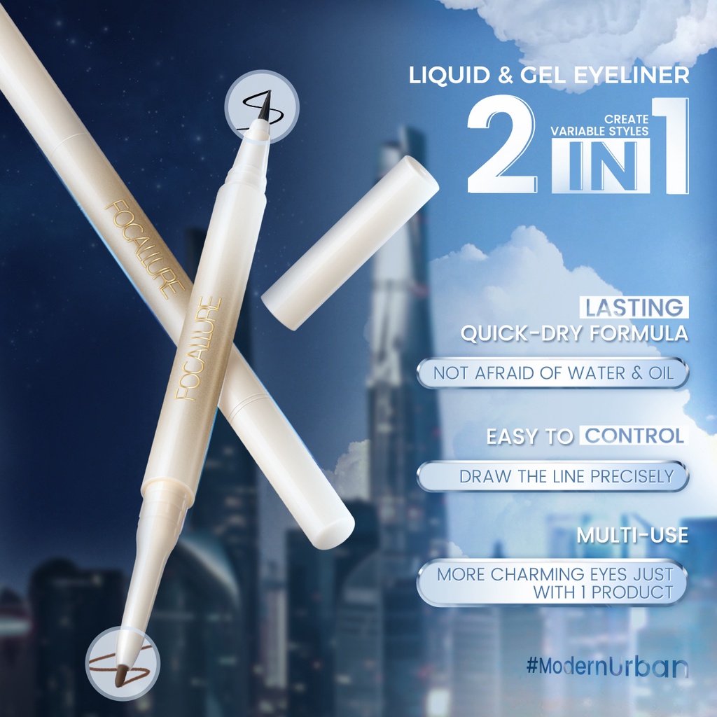 FOCALLURE Double-Ended Lasting Eyeliner Liquid Eyeliner Gel Eyeliner 2-In-1 High Pigment Waterproof Smudge-Proof