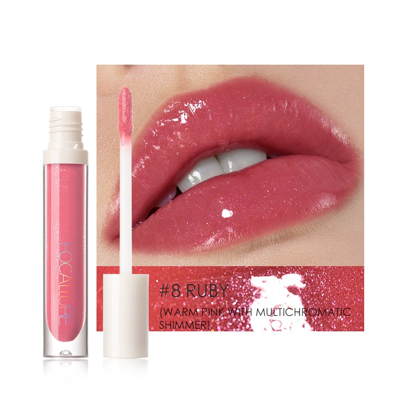 FOCALLURE High Shine Shimmer Lip Gloss 16 Colors Mint Extract Vitamin E Lip Care Glossy Makeup
