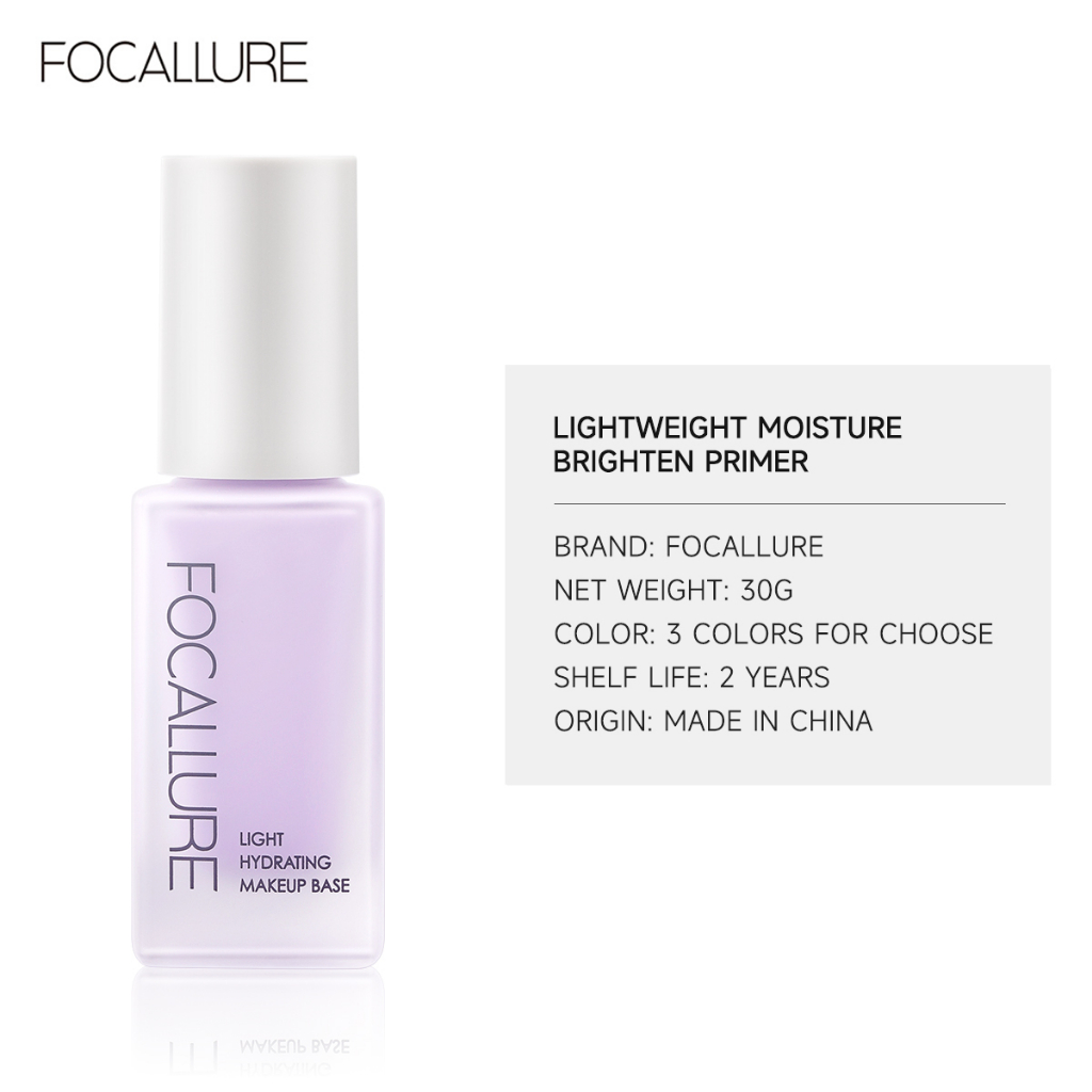 FOCALLURE Lightweight Moisture Brighten Primer Skin Barrier Correct Skin Tone Waterproof Three Shades Corrects