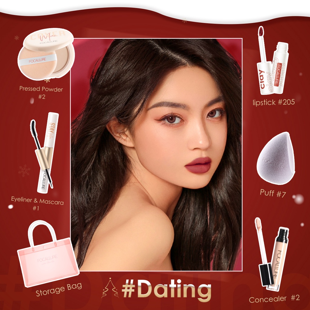 FOCALLURE Makeup Kit Complete Set Liptint Matte Mascara Black Eyeliner Eyebrow