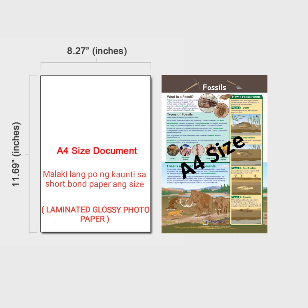 FOSSILS POSTERS CHARTS I ALL ABOUT SCIENCE CHARTS, A4 Size Laminated for kids