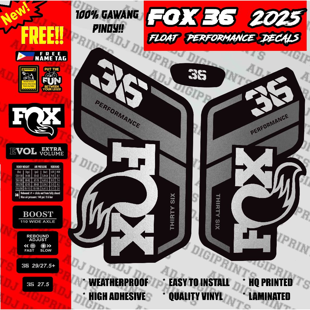FOX 36 FLOAT PERFORMANCE 2025 for MTB Fork Decals Sticker.