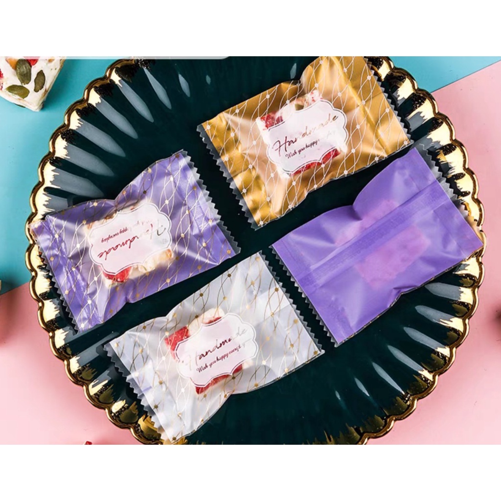 FP1679 (100pcs) 5.5x8.5 CM Handmade Gold Purple White Cookie Bag Pastry Wrapper Polvoron Wrapper