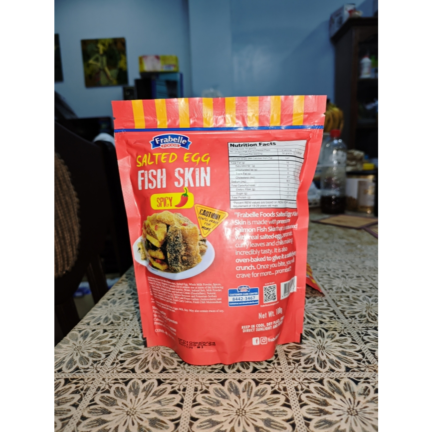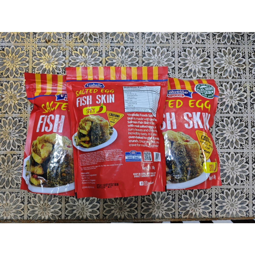 FRABELLE FOODS Salted Egg Fish Skin Original & Spicy 100grams - made with real Salmon Skin