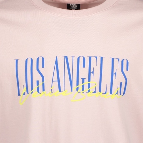 F/SBN Light Pink Los Angeles Print Round Neck Tshirt Authentic Overrun