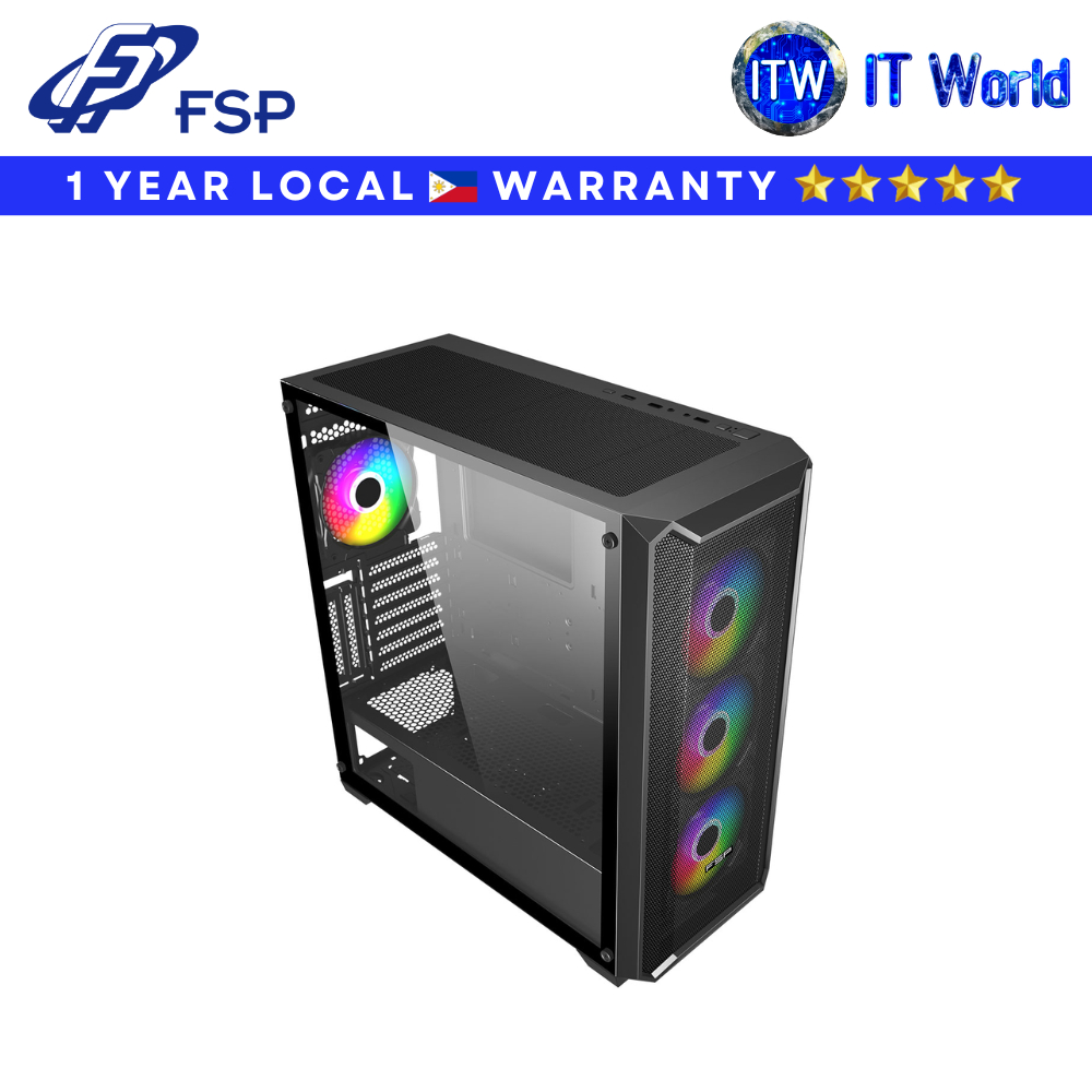 FSP PC Case CMT591A-Black E-ATX/ RGB Fans /360mm Radiator Support /USB 3.0 / Glass Side Panel) | itw