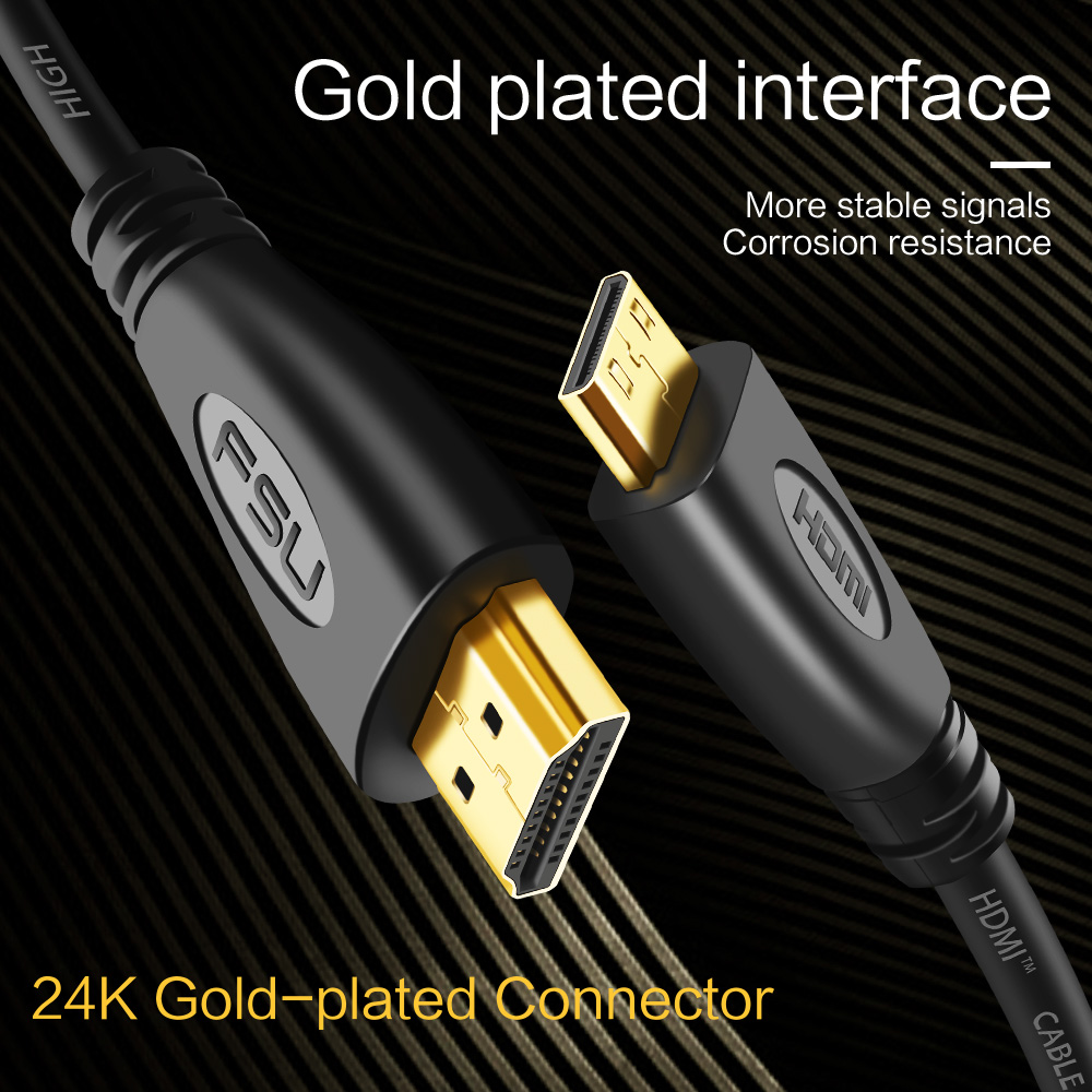 FSU 1m 1.5m 2m 3m 5m Mini HDMI To HDMI Cable Male To Male 1080P 3D for Camera Tablet Projector High Speed Gold Plated Cable