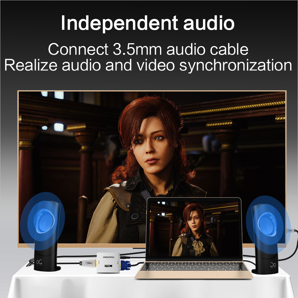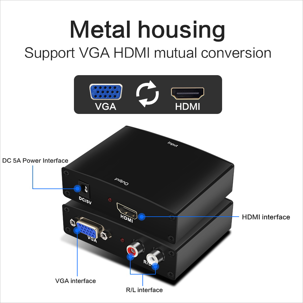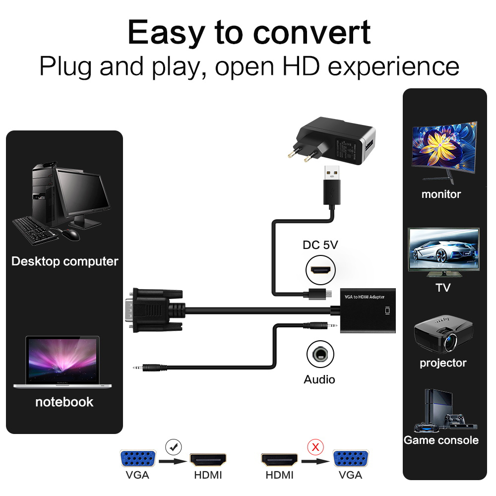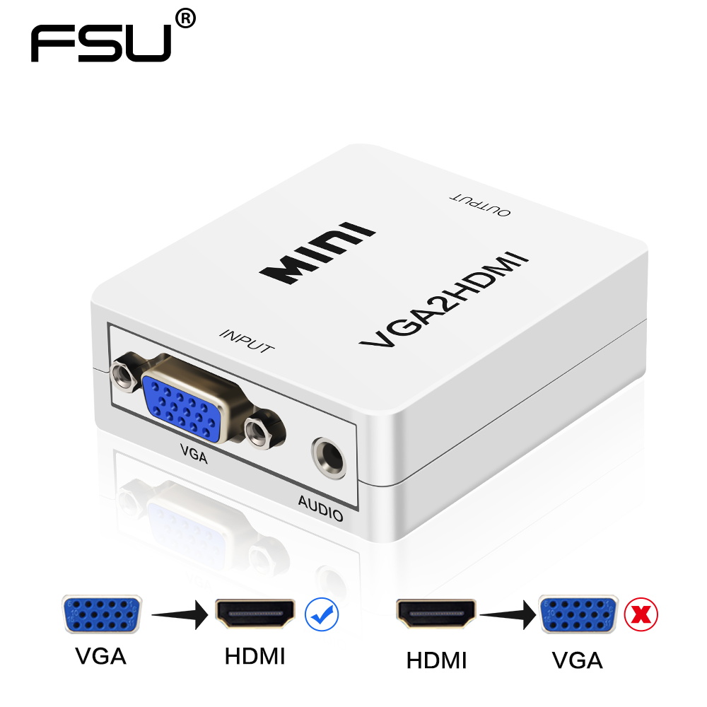 FSU VGA To HDMI Converter Plug and Play VGA Input HDMI Output 1080P HD Audio Cable Adapter for Notebook HDTV Projector