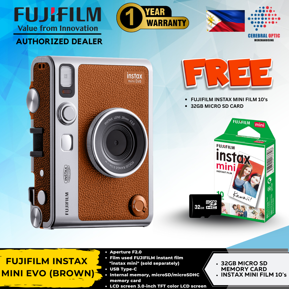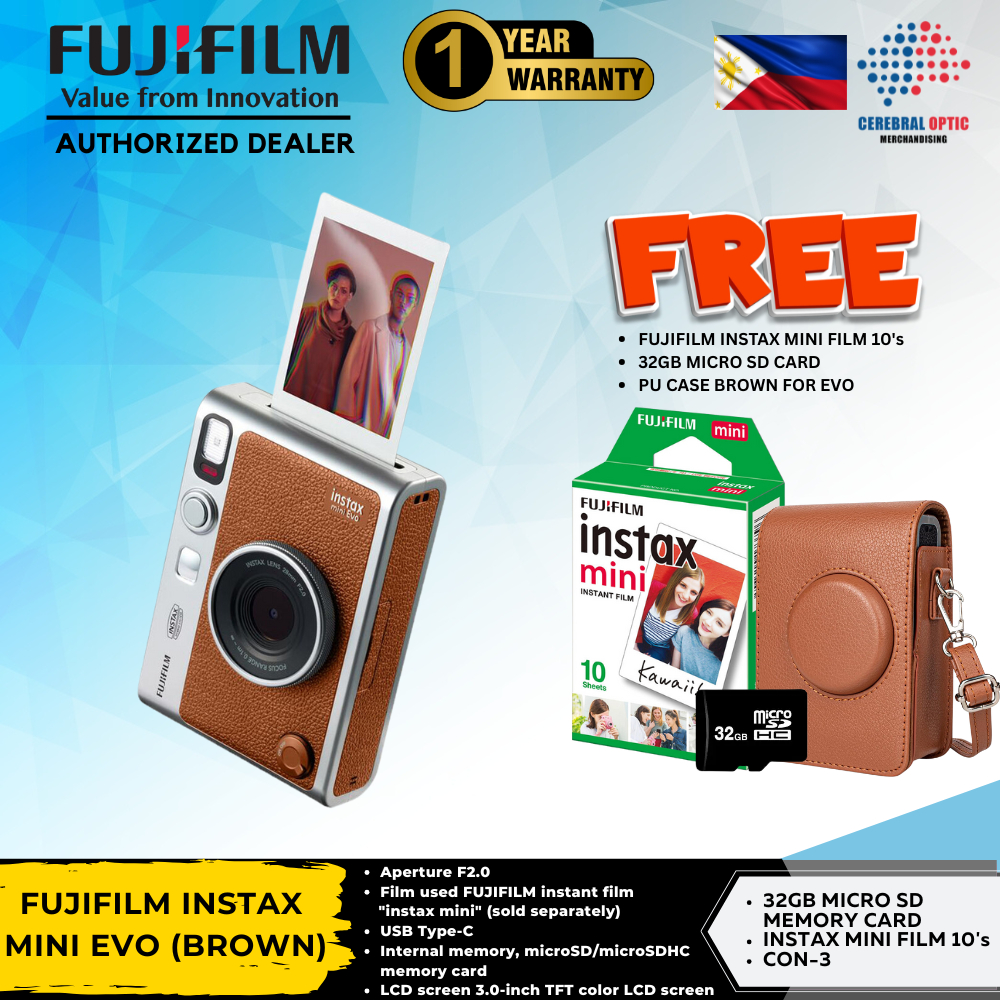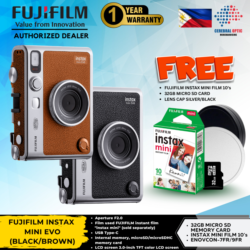 FUJIFILM INSTAX MINI EVO W/ FREEBIE - INSTAX MINI FILM 10's, 32GB MICRO SD, LENS CAP SILVER/BLACK