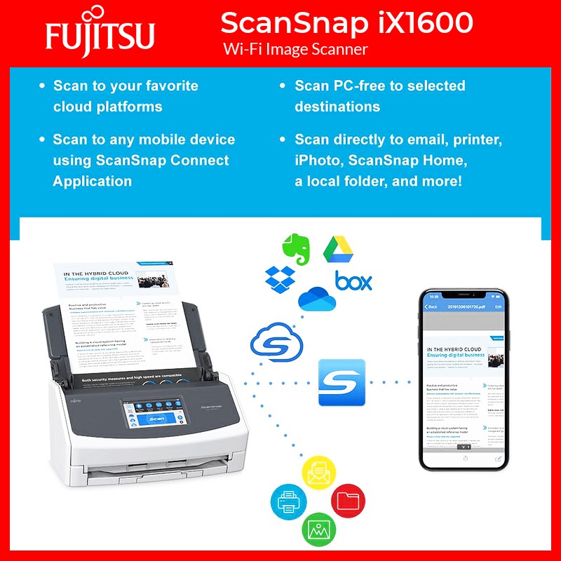FUJITSU iX1600 Scanner WiFi Wireless Image Scanner ScanSnap Portable Sheet Fed Document ADF