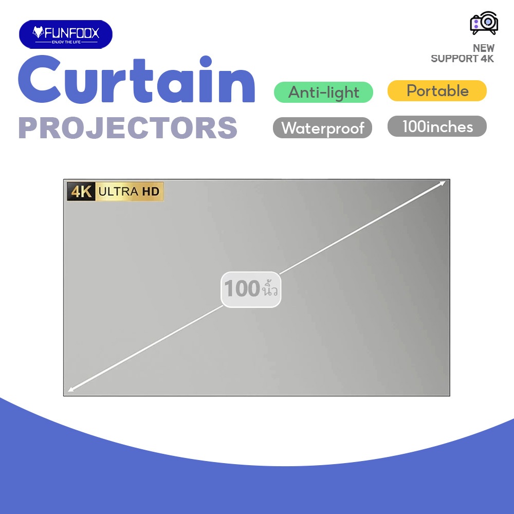 FUNFOOX MOE projector Screen 100 inches HD projector screen Anti-Light Curtain High brightness 16:9