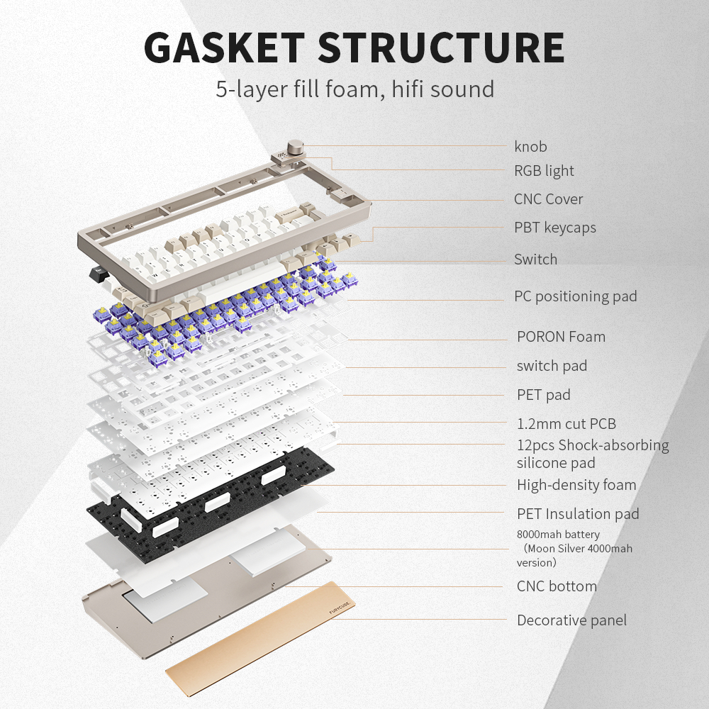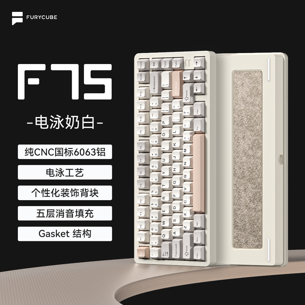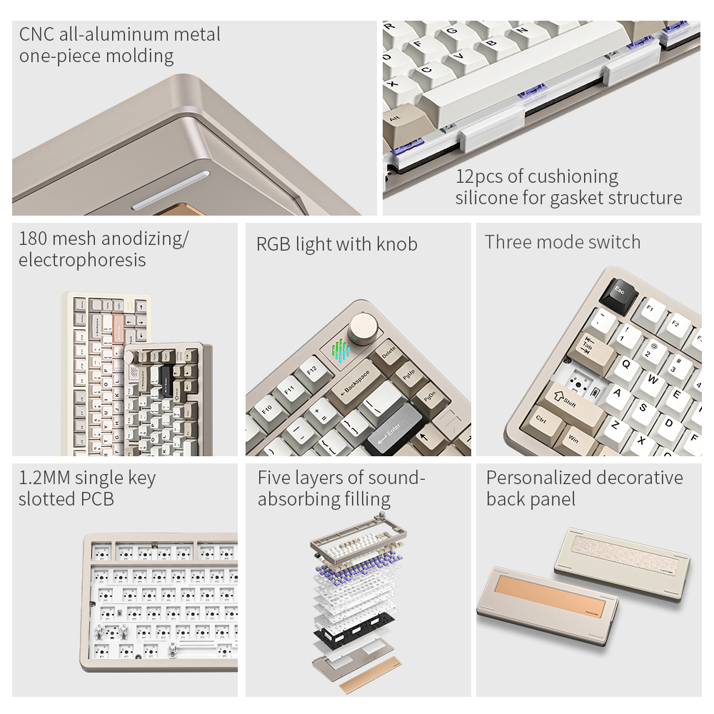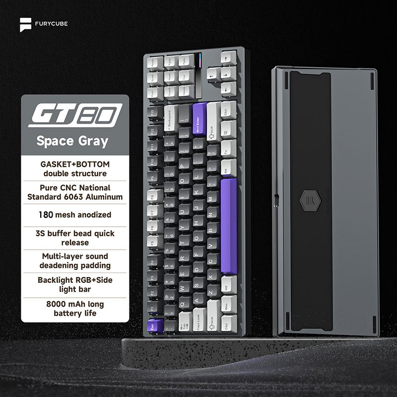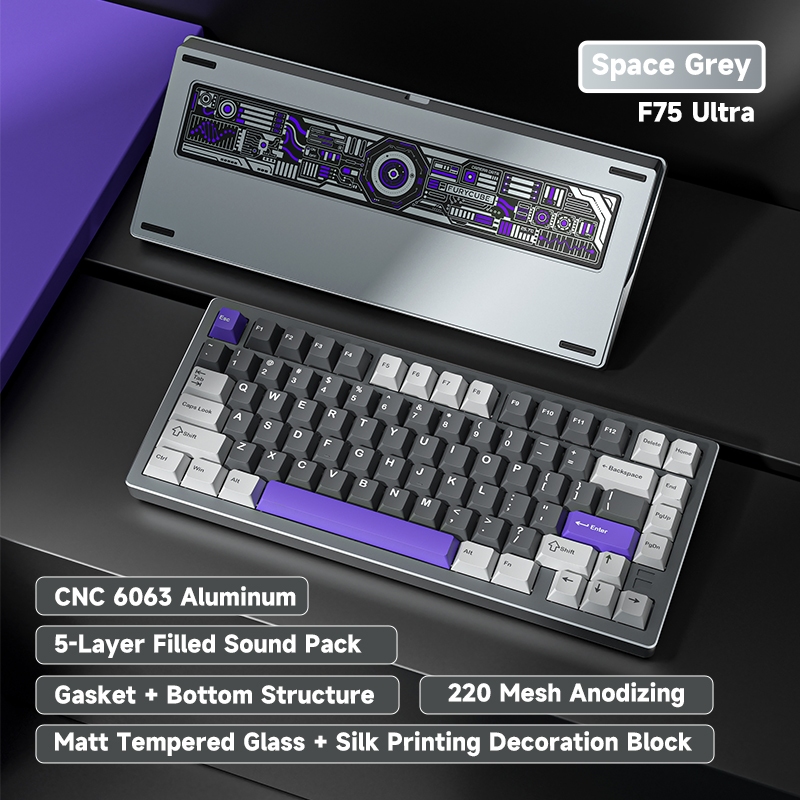 FURYCUBE F75 Aluminum Keyboard 75% GASKET Structure RGB Screen Bluetooth 2.4G Mechanical Keyboard