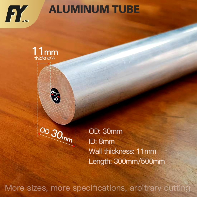 FUYI Aluminum tube OD 30mm ID 8mm alloy tube 30mm outer diameter 8mm inner diameter pipe wall thickness 11mm size 8x4.6 300mm 500mm Aluminium hollow tubing round bar
