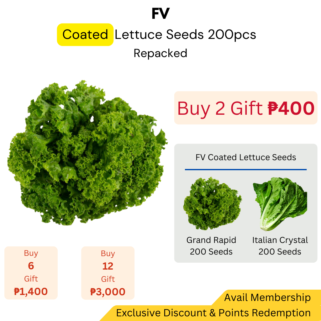 FV Coated Lettuce Seeds 200pcs | grand rapid Italian Batavia romaine lollo bionda lollo rossa 014