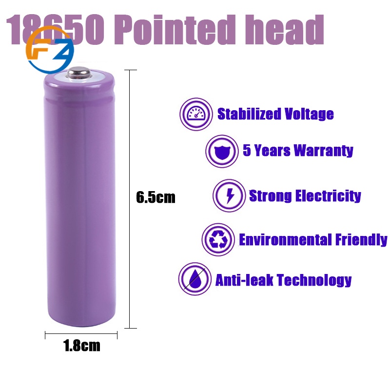 FZ Genuine Hongli 18650 lithium battery flat head pointed large capacity small fan charging treasure