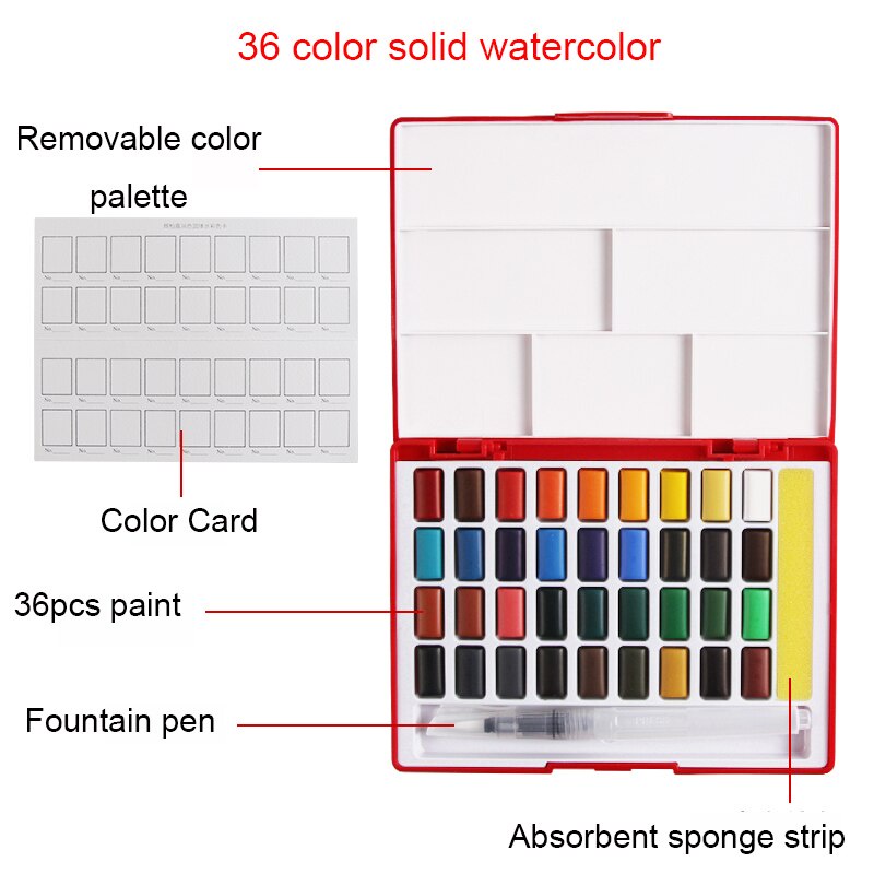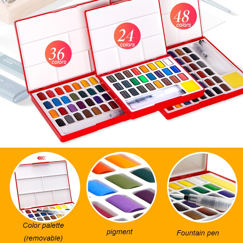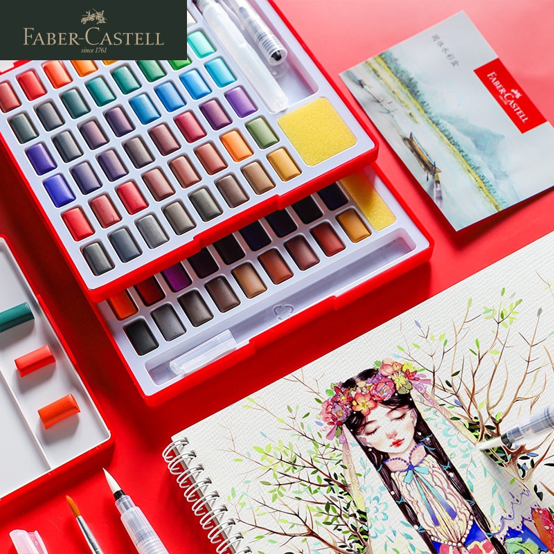 Faber-Castell Solid Watercolor Paint Set 24/36/48 Color Watercolor Paint Dispensing Portable Painting Tools Art Supplies
