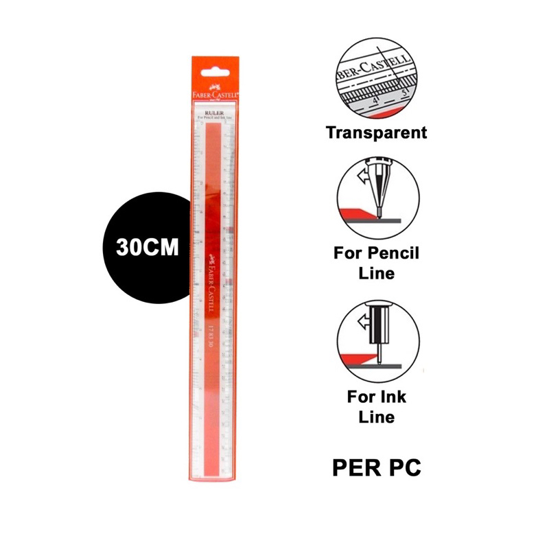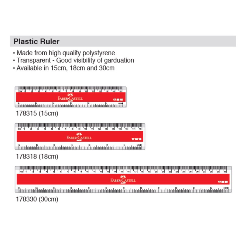Faber Castell Transparent Plastic Ruler Stationary 15cm / 18cm / 30cm - (1s/CARD) Pembaris Plastik Transparent Straight