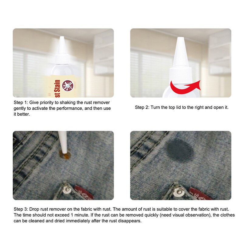 Fabric Rust Stain Clothes Rust Remover Strong Decontamination and Rust Remover Waterless Laundry Stain Removers