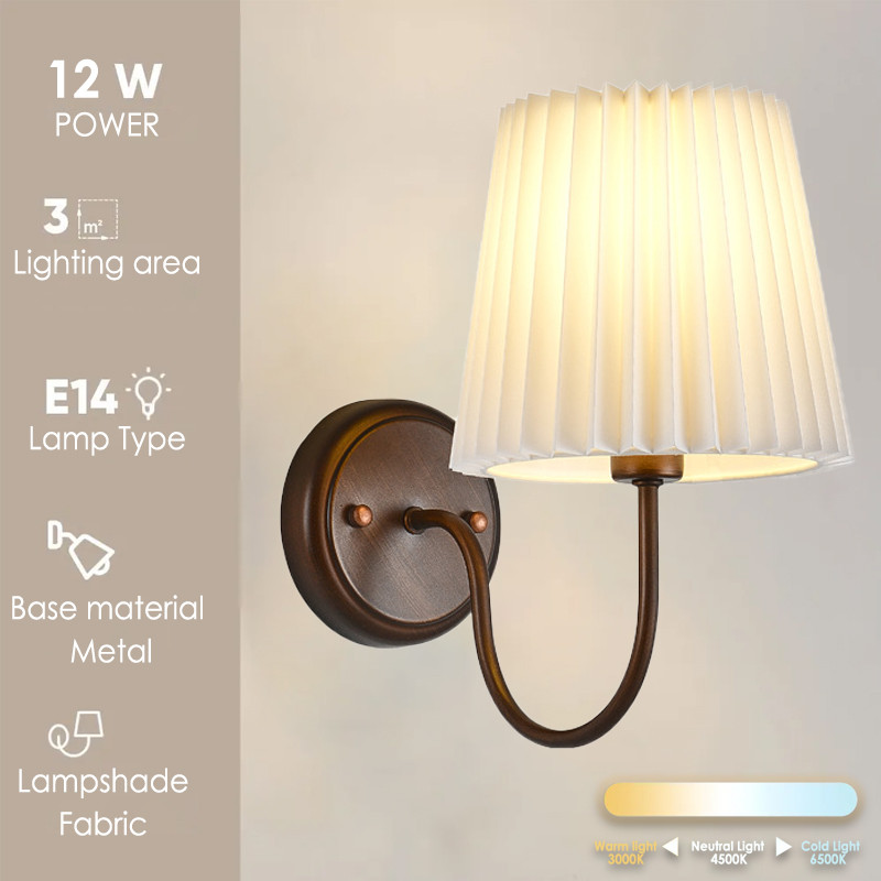 Fabric Shade Bedside Reading Lamp Wall Sconces Aesthetic Vintage Wall Light Fixtures For Bedroom / Living Room / Corridor / Staircase / Hallway
