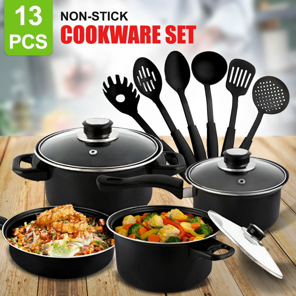 FabulousFlat 13pcs Kitchen Non-stick Cookware & Utensil Set Tools